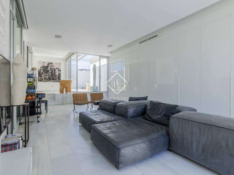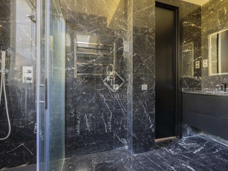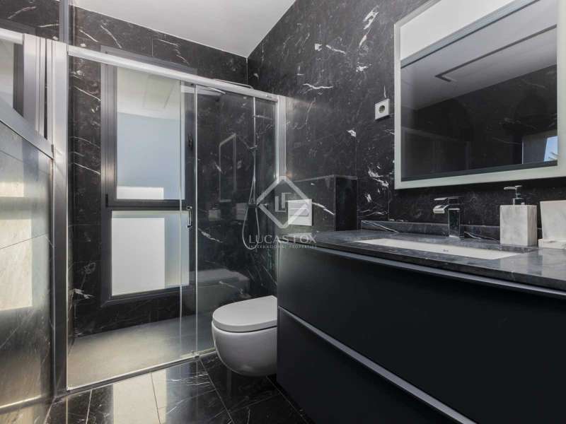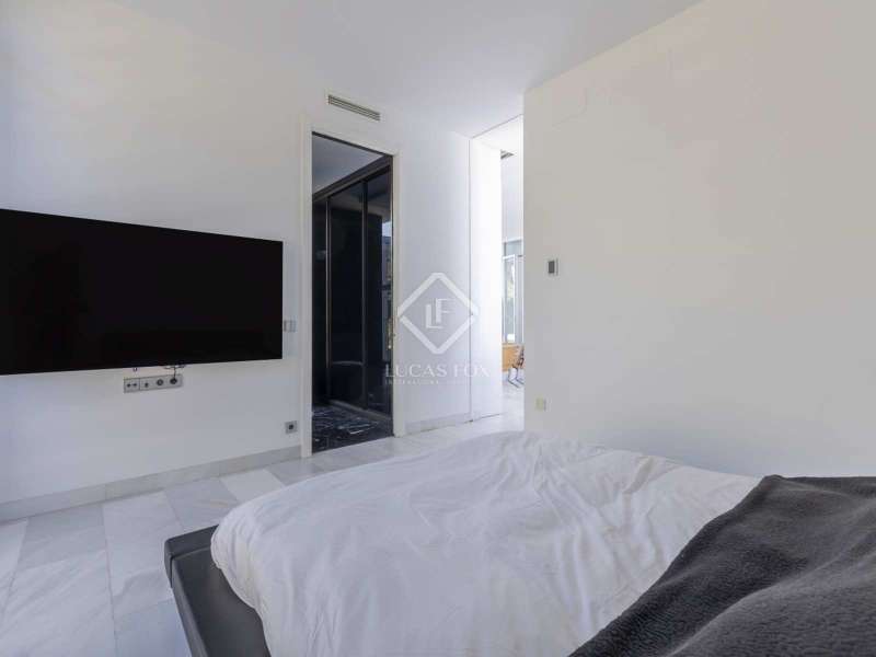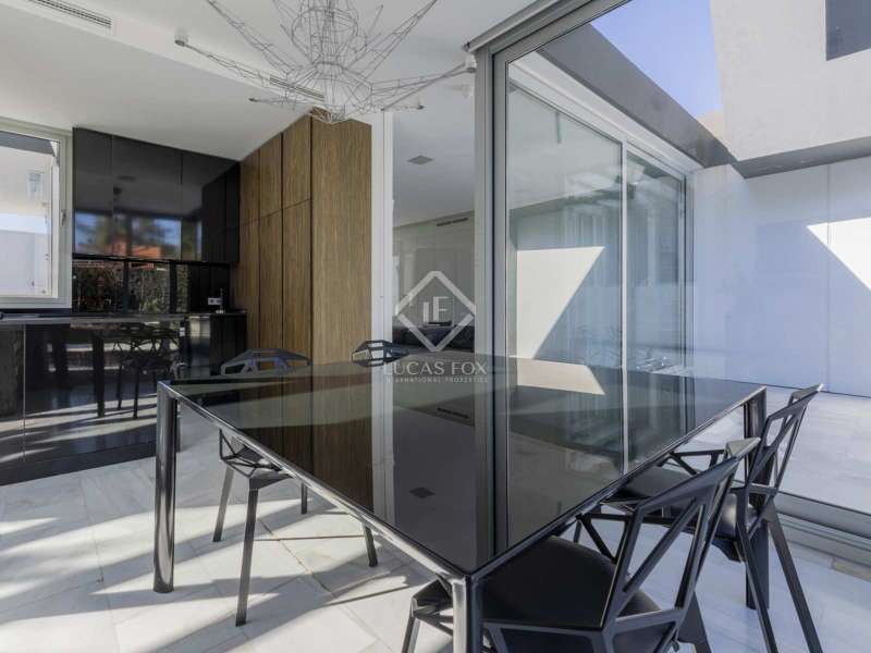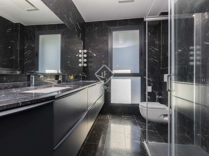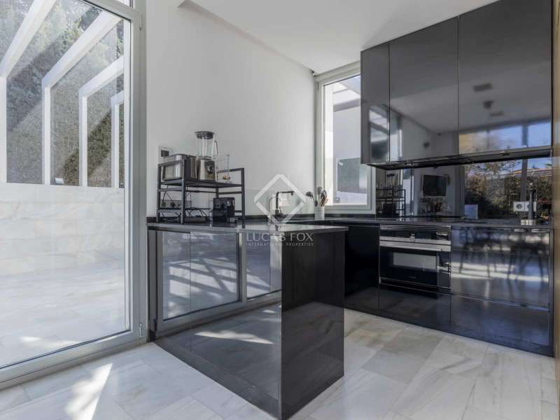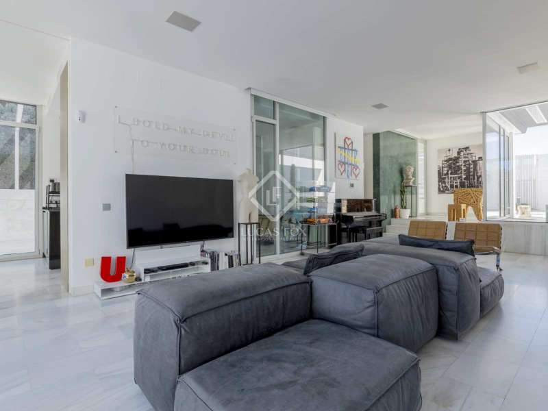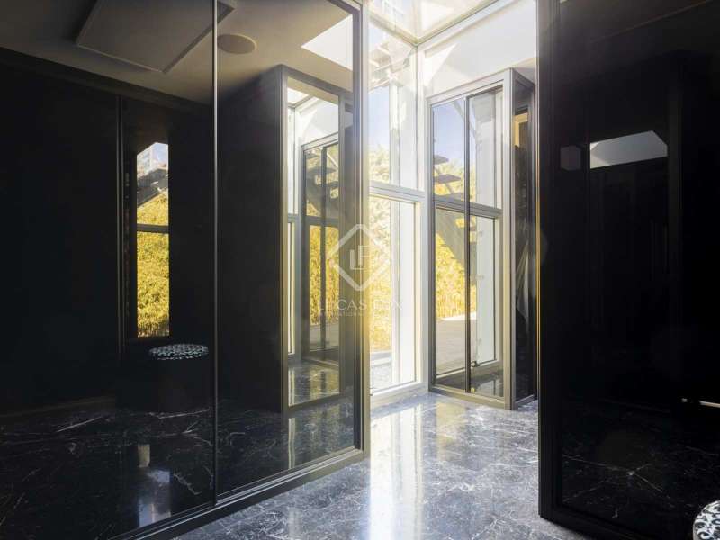 Lucas Fox is proud to present this incredibly designed house in the Parque Boadilla development . It has an area of 420 m² on a 1000 m² plot that stands out for its comfort, natural light and tranquility. The discreet-looking property goes almost unnoticed from the street, but upon entering the plot its uniqueness is perceived. The ground floor offers lots of light and the spacious living room has fantastic views of the main garden and pool. On this floor there is a toilet, a comfortable kitchen with a dining room , an study and the main bedroom, with a huge dressing room and a private bathroom. Both the dressing room and the bathroom are covered in elegant black marble and have access from different ends to guarantee privacy and rest. The ground floor stands out for its large maximum security windows, which allow in abundant natural light and offer beautiful views. In addition, we can access the exterior from practically any point: the kitchen, the living room or the bedroom. The upper floor is intended exclusively for rest. Here, there is a large secondary bedroom with its own bathroom . In addition, three other large and bright bedrooms are offered that share a bathroom. Both bathrooms enjoy the same finishes as the main bedroom. It is worth mentioning that this area also has an armored access door for greater security and tranquility. In front of the bedroom area, taking advantage of the ground floor deck, we will enjoy a roof terrace that offers us 360º views of the surroundings. Finally, under the main porch, guided by the access ramp from the entrance, we will reach the independent garage with capacity for four large cars. The staff bedroom is also located here, which has its own bathroom and the washing and ironing area. The exterior is truly exceptional and accessible from any point in the house. It offers a completely private garden protected by vegetation, both its own and the surrounding areas , and is divided into several areas. It is worth highlighting the porch, which offers a large surface that protects us from the elements and offers comfortable shade to enjoy the exterior at any time of the summer, with direct access to the pool, a grass area ideal for sunbathing, playing or simply rest. On the side, there is a paved area, also covered with marble; An ideal space for the exterior dining room or play area, among others. In the quality section, the property has marble floors, security windows, armored access doors, high-tech security system, home automation control system that includes lighting, air conditioning and even blinds. As for air conditioning, it has ducted ducted air conditioning, underfloor heating powered by mains gas and solar thermal panels for the production of domestic hot water. It has an exclusive design decoration and high quality materials and, above all, high durability. It is, in short, a house with an avant-garde design, where even the smallest detail is designed with the clear idea that the interior and exterior can be enjoyed equally at any time of the year. A home that combines convenience and comfort with a privileged location a few minutes walk from St. Michael's school, the Cortijo Sur shopping centre and the social club of the Parque Boadilla development . The property can be visited easily. Contact Lucas Fox today by phone or email to arrange a viewing. We work 7 days a week to be able to adapt to the needs of our clients. In addition, you can also visit us at our Lucas Fox lounge that we have just opened on Avenida de Europa, 38 in Pozuelo for a cup of coffee so that we can analyze your requirements in more detail and thus help you find your perfect home or investment.
