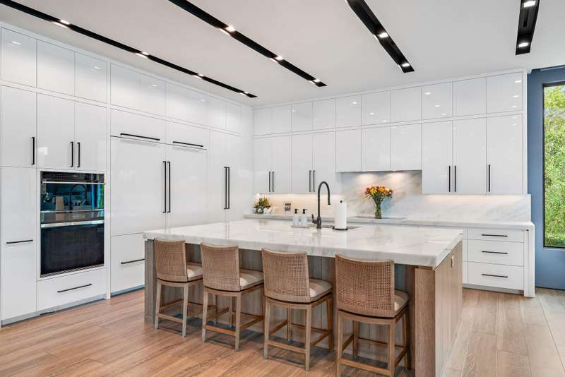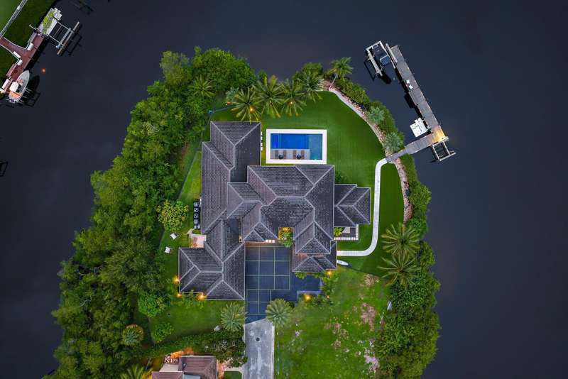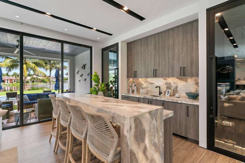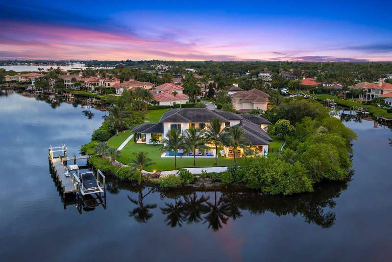 Located on a peninsula lot of 1.33 acres with 500 feet of deep waterfrontage on three sides with no fixed bridges, this truly is one of the finest waterfront properties in our area. Custom built in 2021 by Ocean Blue Custom Homes, this signature estate in the luxury, gated community - The Islands of Jupiter, meets the demands of the most sophisticated clients. Floor to ceiling walls of glass brings the outside in, offering a ''light and bright'' texture to a modern coastal interior palette. Views to the pool with spa, summer kitchen with bar, dock with two lifts, professional landscaping, and expansive backyard with endless artificial turf; all define a dreamlike setting for a family retreat. The current owner made the following additions/upgrades within the past 12 months: