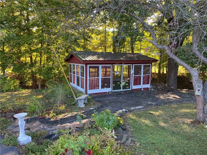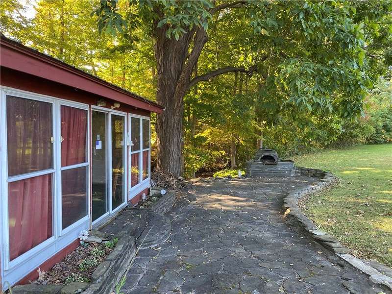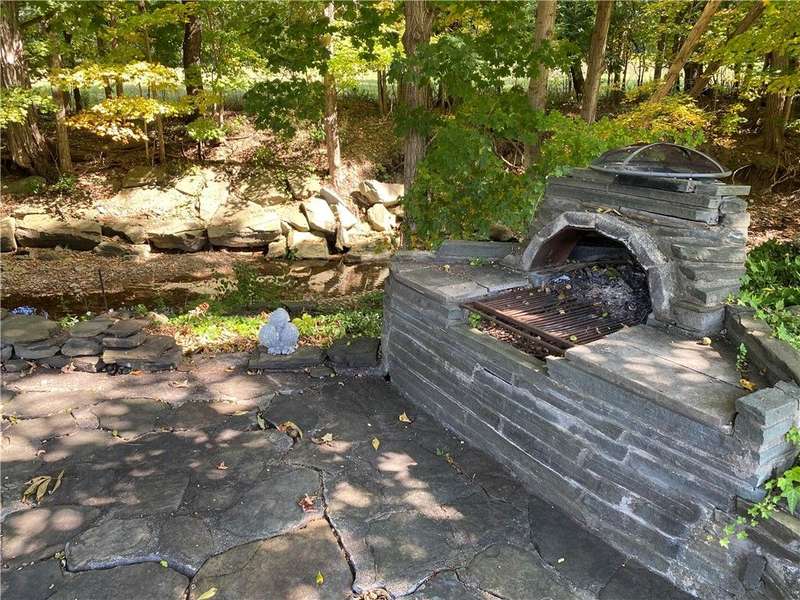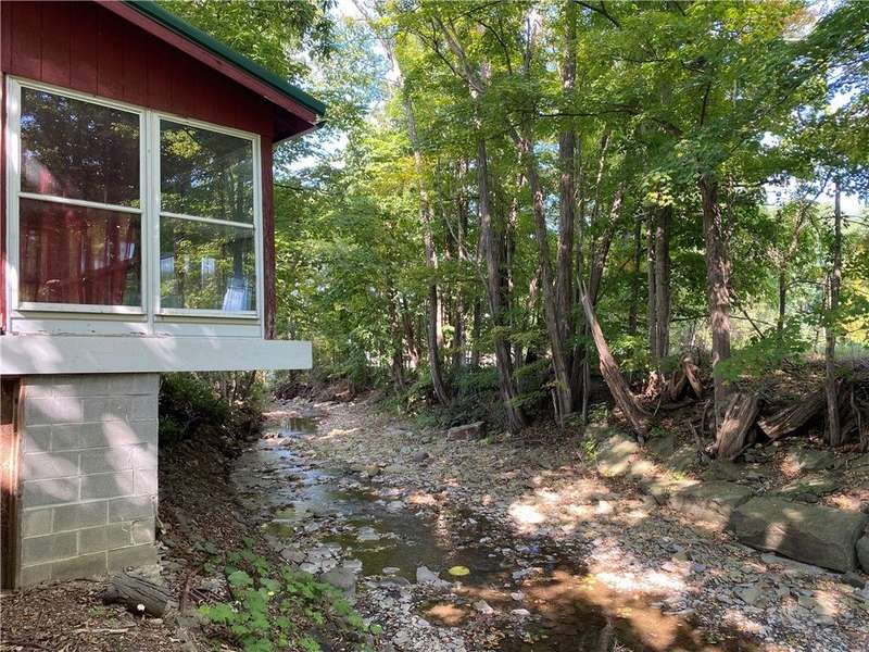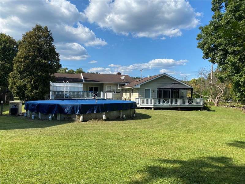 New Listing! Spacious Creekside Ranch with attached 2 car garage, large private yard and endless possibilities. Enjoy the glass-enclosed pavilion along the creek, perfect for relaxing year-round. Outdoor fire pit, private backyard and above-ground pool create the ideal outdoor entertaining space and make summer fun a breeze. Sliders head out to the back deck, extending your living space outdoors! Inside you will find a large great room with soaring ceilings, tons of natural light and hookups for a wet bar - perfect for movie night and football games! Full bath located close to sliding door allows for easy access for those enjoying the pool! Large kitchen with breakfast nook and formal dining room. Den/home office has gorgeous wood floors, a large bay window and lovely fireplace to take the chill off those cold winter nights! 3 bedrooms on the first floor (could be converted back to two). The finished lower level offers an additional bedroom and full bath, plus plenty of storage and an area that would be perfect as a rec room.Benefit from Village water and natural gas with no Village Taxes! Fantastic location, just a stones throw from the Village and close to all amenities - with Reservoir Creek Golf Course right next door!