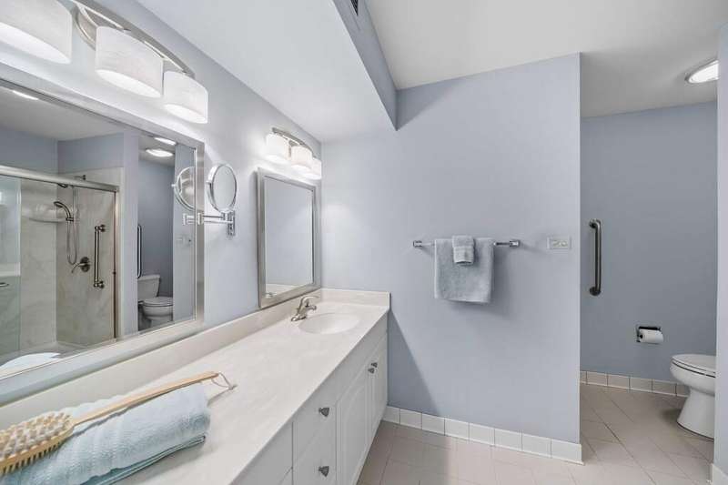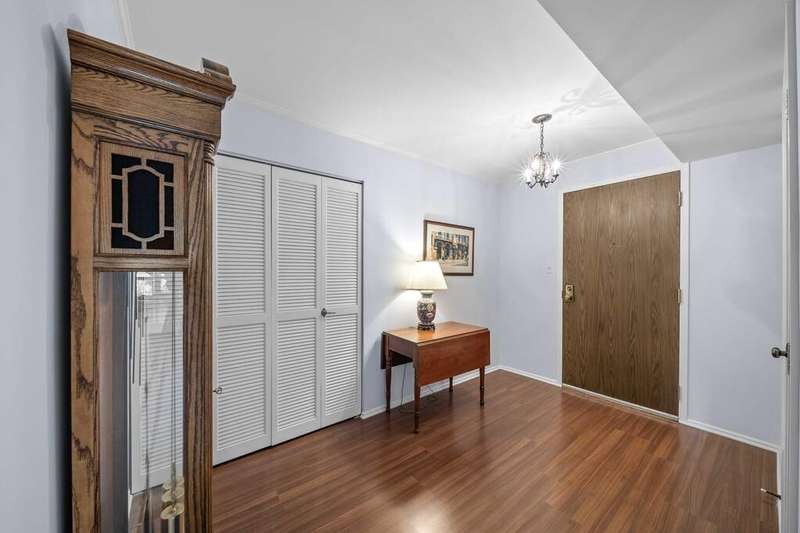 Welcome to Shermer Square, where timeless design meets modern updates in this spacious 2-bedroom + den, 2-bath residence. With over 1,800 square feet of living space, this home has been reimagined with thoughtful upgrades that elevate both function and style. A gracious foyer introduces the interiors, leading to expansive living and dining rooms anchored by a brick-surround fireplace and seamless access to the private balcony overlooking serene treetop views. The updated kitchen shines with quartz countertops, shaker cabinetry with pull-outs, sleek tile backsplash, and a full suite of Whirlpool stainless appliances-designed for both everyday ease and entertaining. The den/office, with custom built-ins, offers a versatile retreat for work or reading, while the private wing showcases a generous second bedroom and a refined hall bath. The primary suite is a true sanctuary with a custom Closets by Design walk-in, crown molding, and a beautifully remodeled bath featuring a walk-in shower with dual sprays and seating. Additional highlights include newer flooring, Corian vanities, newer HVAC, a fireplace refresh with remote and glass doors, in-unit laundry, and consistent design details carried throughout. Lifestyle amenities complete the package: heated garage parking plus ample visitor spaces, a dedicated storage locker, lushly landscaped grounds, and a sparkling outdoor pool. The association provides exterior maintenance, water, snow removal, and lawn care-ensuring a low-maintenance, turnkey experience. All this within moments of downtown Northbrook's best-walk to the Metra, Village Green, Sunset Foods, shops, dining, and the library. A rare opportunity to live in one of the North Shore's most convenient and well-maintained communities, ready for you to move right in!