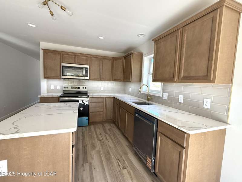 Brand new ready to move-in 3 BR, 2 bath RANCH! Welcoming covered front porch opens into expansive living room, kitchen to die for, 1st floor laundry, large master BR w/walk-in closet and 3/4 bath w/custom shower, deck off dining room, luxury vinyl plank flooring throughout living area, heat pump w/AC, full walk-out basement w/garage & egress window for future finishing, public sewer & well.