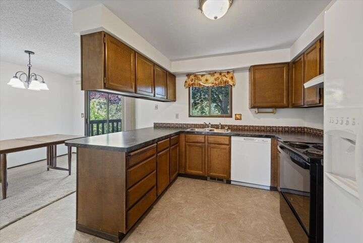 Rare opportunity in the sought-after South Valley! Located in the Central Valley School District, this 4-bed, 2-bath home sits on a large corner lot in a cul-de-sac near Ponderosa Bar & Grill, The Mix Hair Salon, and Barney’s Grocery. Minutes to trails for hiking and biking. Enjoy a light-filled living room with floor-to-ceiling windows and a new gas fireplace, open dining area with access to the back deck, and kitchen with eat-in bar—appliances stay (newer d/w, stove, washer, dryer)! Main level offers 2 bedrooms and an updated ¾ bath. Downstairs features 2 more bedrooms, ¾ bath, large family room with wood fireplace, and laundry with utility sink. Recent updates include fresh paint, new carpet downstairs, and freshly cleaned carpets upstairs. Spacious deck overlooks a private, fenced yard with fruit trees, powered shed, and RV/boat parking with dump station and electrical. High-efficiency gas furnace and central A/C. Attached garage with yard access. Don't miss this one!
