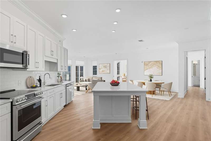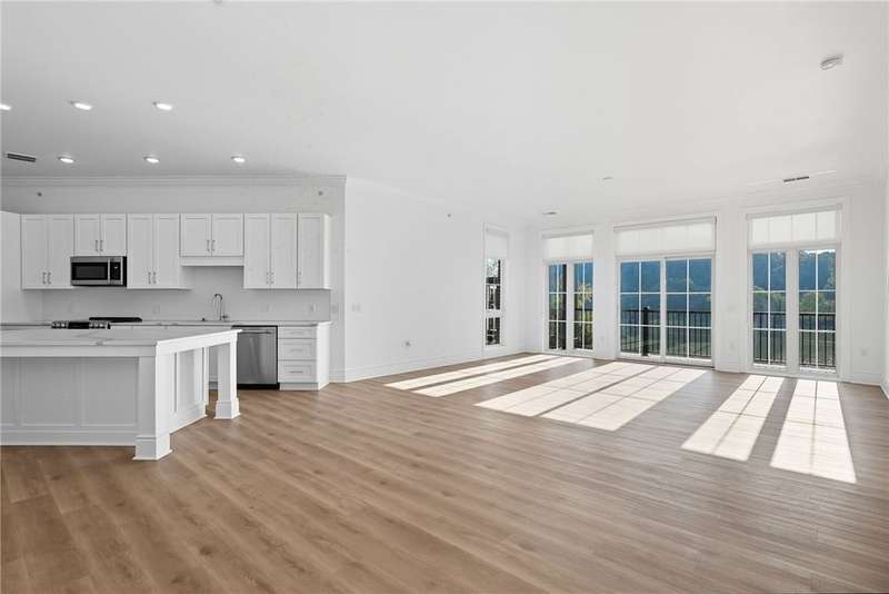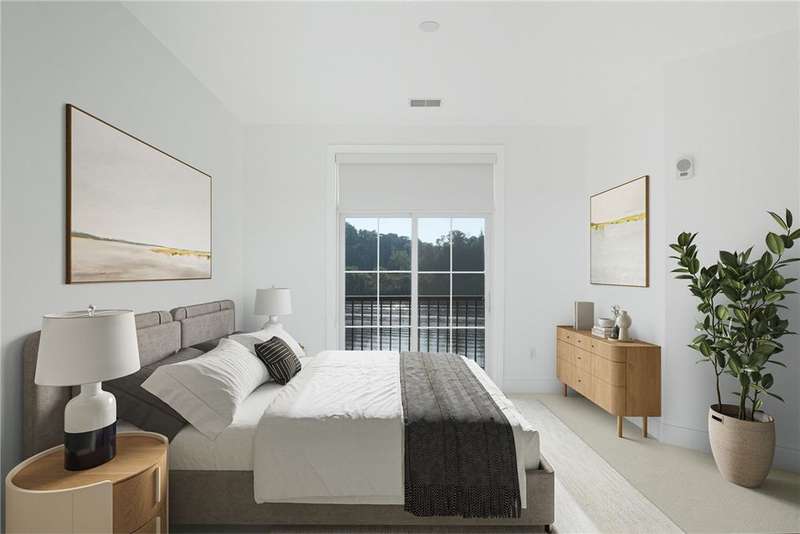 Discover The Brooks, a new resort-style condominium building along the Allegheny River within The River's Edge community. The Brooks promises an unmatched living experience with breathtaking views. This 4th floor unit, spanning 2,348 sq ft, is centrally located within the building. Floor-to-ceiling windows flood the large living, dining, and kitchen areas with natural light in this expansive penthouse unit. 10-foot ceilings provide a luxurious, airy atmosphere. Step out onto the covered balcony to enjoy peaceful waterfront mornings or vibrant sunsets. Ideal for entertaining and everyday living, the open kitchen features a large island, stainless appliances & pantry. In addition to 3 bedrooms, this floorplan features a dedicated laundry room, a powder room and 2 large hall closets. Amenities include the lobby w TV & fireplace, fitness center, infinity pool, & event rooms. One indoor garage space and a private garage included. Condo fee waived for first 12 months -includes cable & WiFi.
