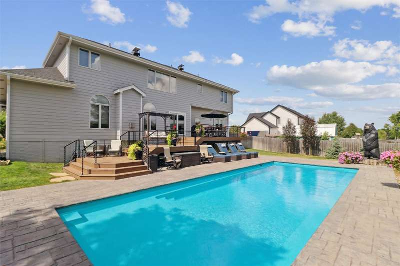 3,400 SF total garage space that holds 8 cars and a16x40 in-ground fiberglass heated saltwater pool installed in 2022, highlights this 2,778 SF two story, that was originally a builders personal home (Tyler Homes). The property includes a 1,000 SF 4-car tandem attached garage with electric vehicle car charger, and a heated 2,400 SF 40x60 detached garage man cave, connected by a breezeway, that can hold 4+ cars and includes a pickle ball court that is just 2 short of regulation size and a half bath. The first floor features a kitchen with huge butler pantry with built in wine racks and wine chiller, island, stainless steel appliances including a gas stove; family room with direct vent gas fireplace, and an office with built ins. The second floor has 4 larger bedrooms, 2 full baths, primary bathroom with soaking tub, separate shower and 2 sinks, and laundry room with built-in ironing board. The basement has a non-conforming bedroom. There is a courtyard/breezeway entrance to the pool. Located on two building lots that are almost one-half acre. This property is the complete package and more.