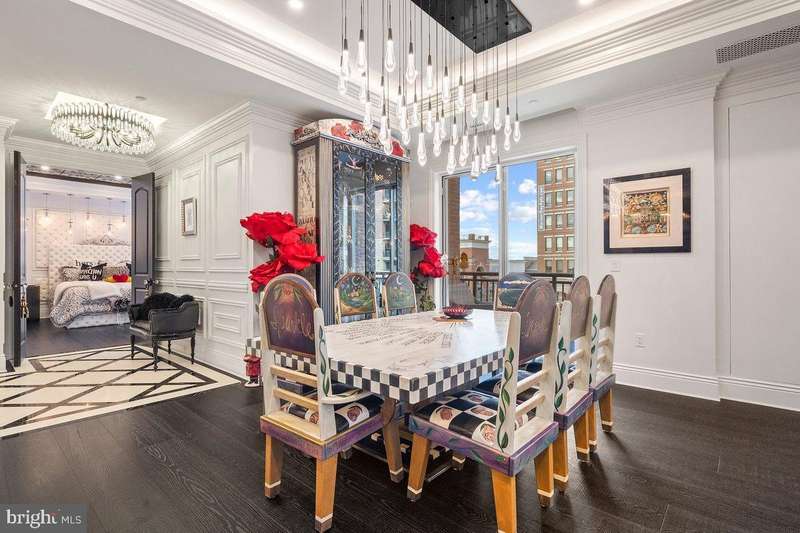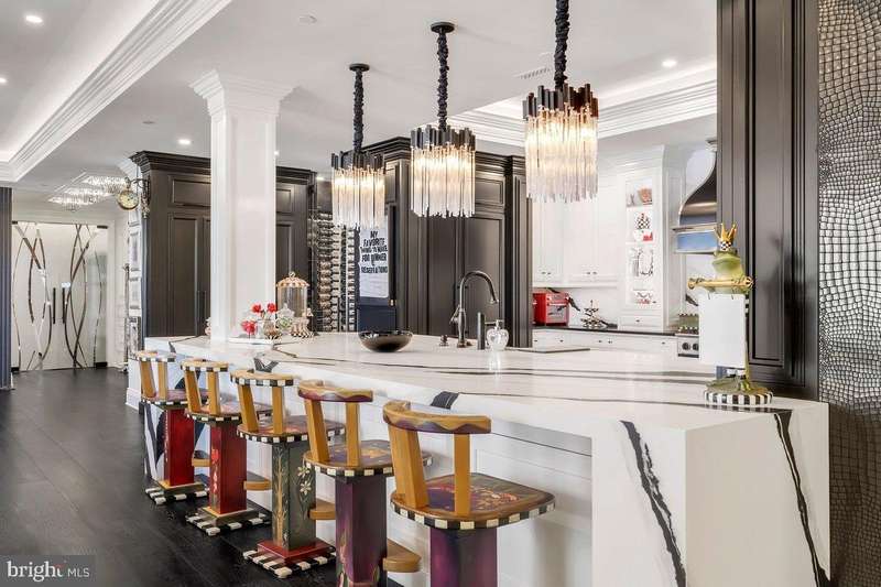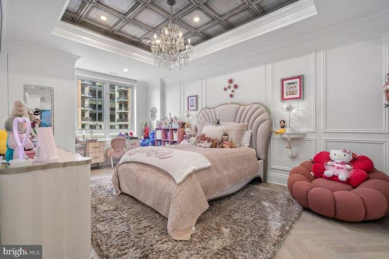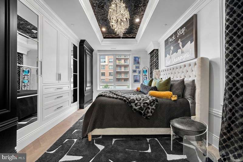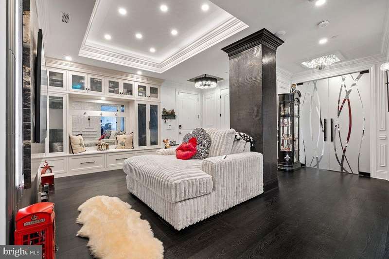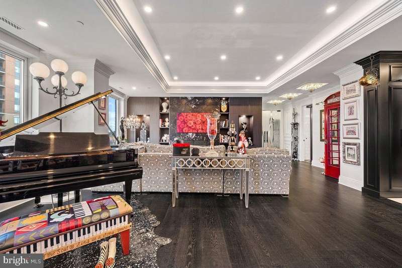 A rare opportunity at the Annapolis Town Center - two units combined into one stunning residence. This 4-bedroom, 3-bath luxury condo features expansive living spaces, two private balconies, and high-end custom finishes throughout. Enjoy the convenience of four garage parking spaces and two storage units, along with all the premier amenities of GrandView Condominiums. This one-of-a-kind residence showcases true custom design and craftsmanship throughout. All main living spaces and bedrooms feature Provenza hardwood flooring, while custom cabinetry and built-ins are designed by Woodworking by Design. The chef's kitchen impresses with a dramatic Calacatta Lumanyx waterfall island, full-height backsplash, sparkling black perimeter counters, and seamless integration to a glass-front wine room. Smart-home living is elevated with a full Lutron system (including motorized shades), Sonos sound, and security by Petitbon. Designer stone selections carry into every space, from brushed titanium hearths and fireplace walls to quartz vanities, thresholds, and mosaic details in bathrooms and wine room. Sophisticated finishes, modern automation, and bespoke craftsmanship make this luxury condominium truly one of a kind.