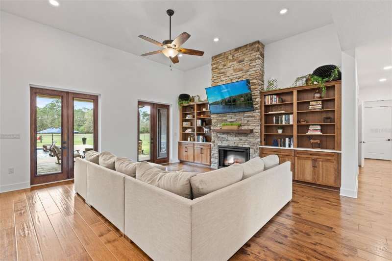 81 acres of glorious seclusion and at the heart your private custom built estate home, elegantly designed and crafted with a versatile floor plan for multi-generational living that includes formal, family, flex and outdoor spaces, your choice of a main floor or second floor primary suite and there is even a hidden pantry for a touch of whimsy! Outside features of the property include: An over 1,000 SqFt zero entry resort style pool with a hot tub and wet pad, 18,000 SqFt asphalt driveway, hurricane windows, dual/split 2-car garages with attic access, whole home Generac system, 1,000 gallon owned and buried propane tank, buried utilities, concrete landscaping borders and a 12-zone watering system for the landscaping. The interior of the home is a light and bright masterpiece of design and functionality delivering; 10’ ceilings throughout / 13’ living room ceiling, 9’ doors, oversized windows with a view in every room, whole home water filtration system, hidden Cat 5 & HDMA cables, custom 3-zone A/C, hickory cabinets throughout, tumbled stone backsplash, soft close cabinetry and drawers, a Maytag commercial washer and dryer with WiFi technology, your choice of owners suites - one on the first floor and one on the second with a wine/coffee bar and fridge to enjoy a beverage on your private composite board balcony, custom shoe closets in both owner’s suites, hidden walk-in kitchen pantry with fridge and custom shelving, engineered hardwood flooring and upgraded spray foam insulation. To say no detail has been missed would be an understatement! With 30+ acres cleared/maintained while the rest remain wild and wooded, this property feels like a personal paradise of native trees and plants right in the middle of Central Florida. You would never know that just minutes away conveniences await - shopping, dining, state parks, lakes and area theme parks and so much more. This level of luxury paired with endless acreage doesn’t come around often - call today to schedule a private tour and be prepared to fall in love with Oak Manor!