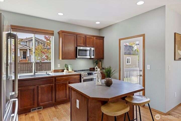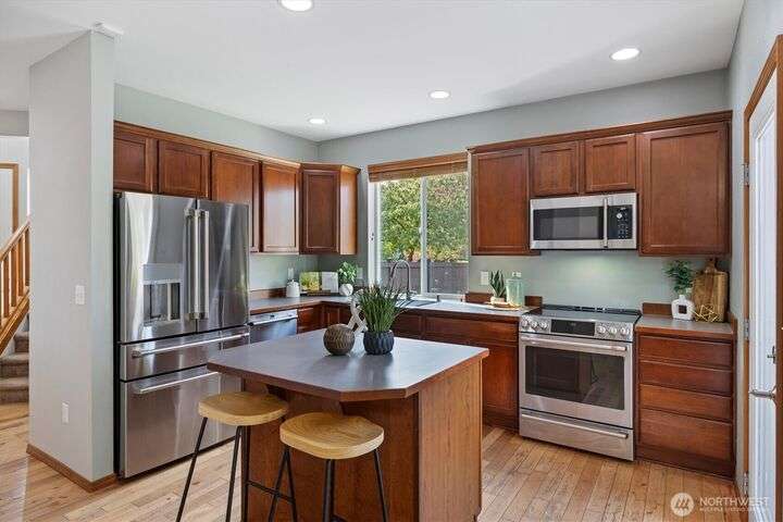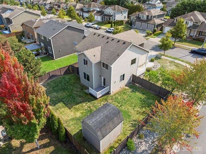 Welcome home to this open-concept floor plan, featuring a main floor with 9’ ceilings & a spacious great room connecting the kitchen, dining, & living spaces. Upstairs you’ll find three generous bedrooms, two full baths, & a bright loft bonus room. This 1,998 sq ft home feels expansive & has been thoughtfully updated over the years with A/C & newer LG Café Series stainless-steel kitchen appliances, including refrigerator, range, microwave, dishwasher, & laundry room with W/D. Well-maintained corner lot with a fully fenced backyard & 10x12 garden shed. Just one block from the HOA community park & a 5 block walk to the elementary school. Minutes from shopping, dining, recreation, and commuting. One-year home warranty included!