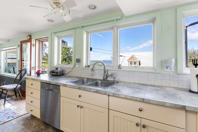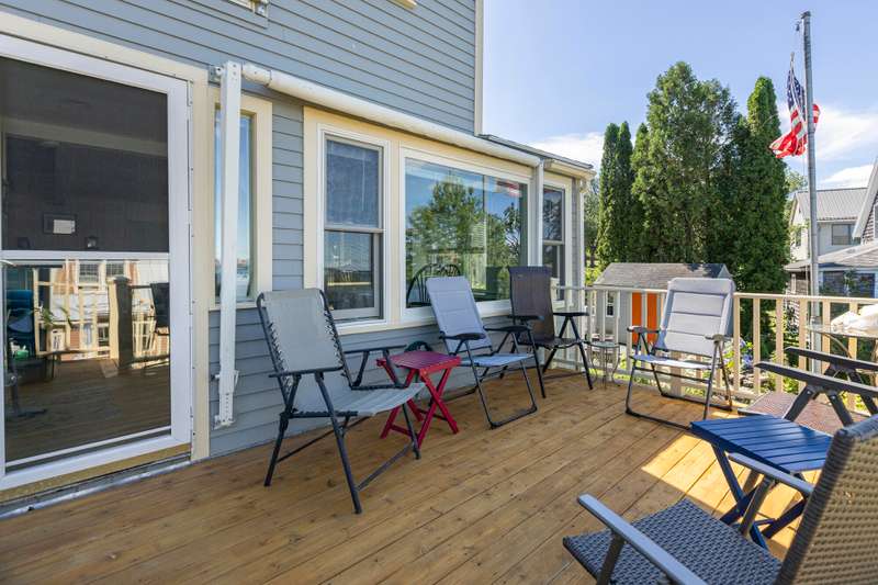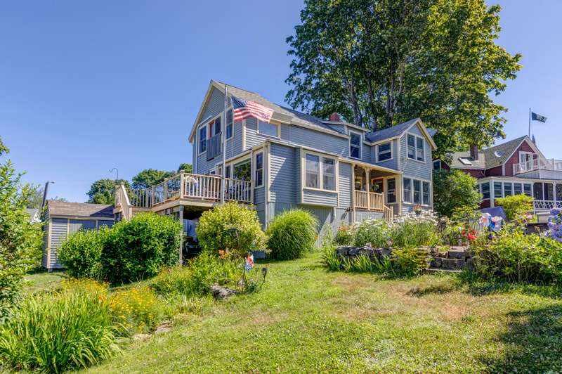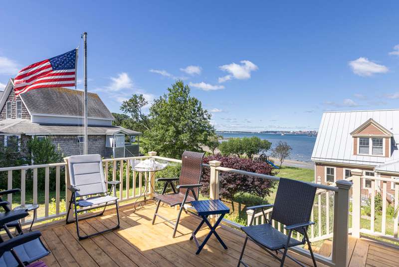 This vintage year-round Peaks Island cottage offers everything you could want plus more. Fully equipped kitchen with pantry, dining room with views to the water, comfortable living room with wood stove and a large family room with bath and adjacent laundry room. Upstairs are three generous bedrooms and a full bath. The location is ideal with great water views of Little Diamond Island, Great Diamond Island, Diamond Passage, Centennial Beach and Casco Bay. Watch pink and purple sunsets and the lights twinkling over Portland Harbor at dusk. Sit on the landscaped patio relaxing with family and friends. Watch the Fourth of July fireworks from your deck or while away the hours unwinding on the beach. There's no end to the pleasure this property will provide. Deeded Shore Access