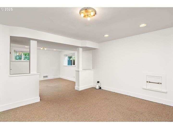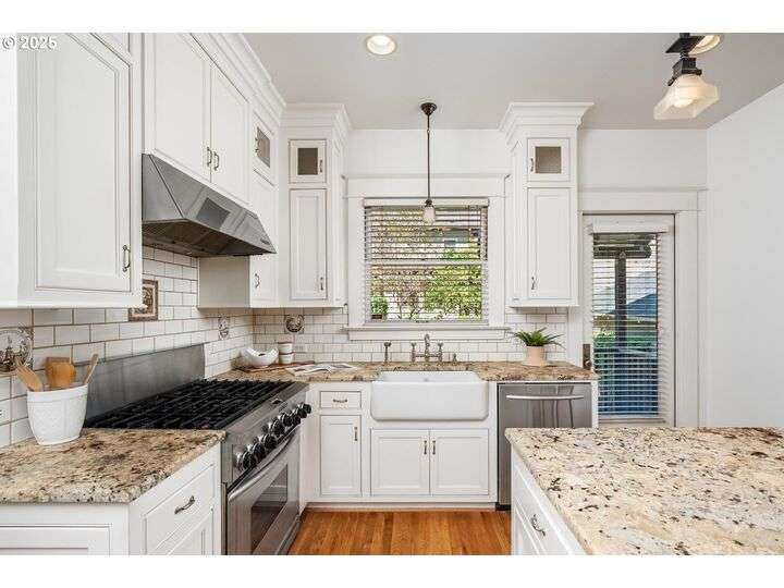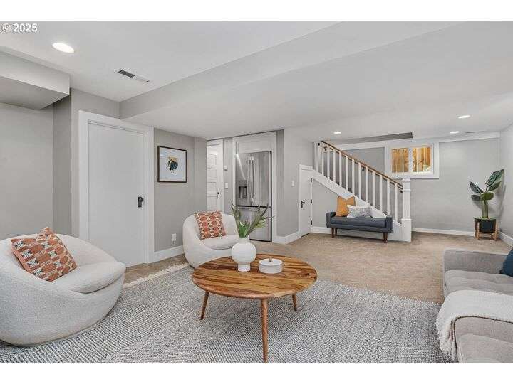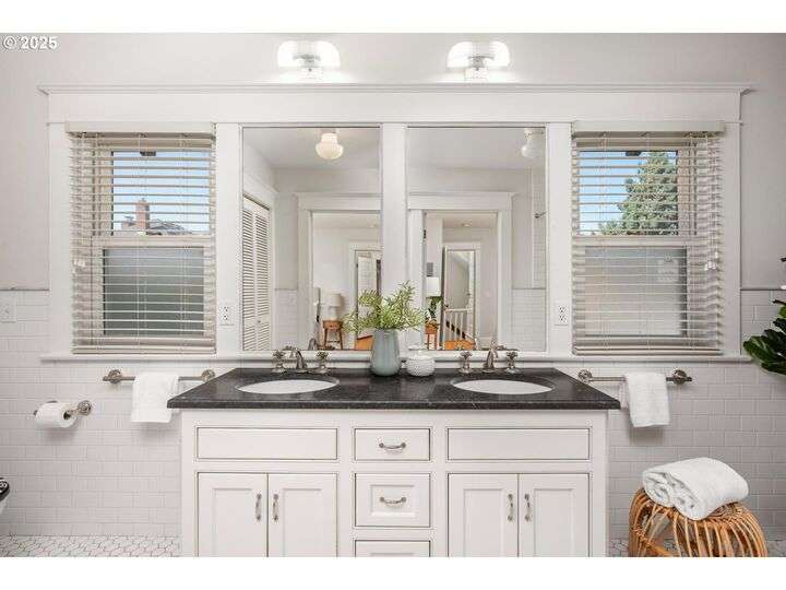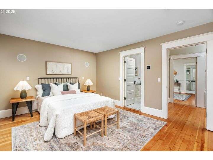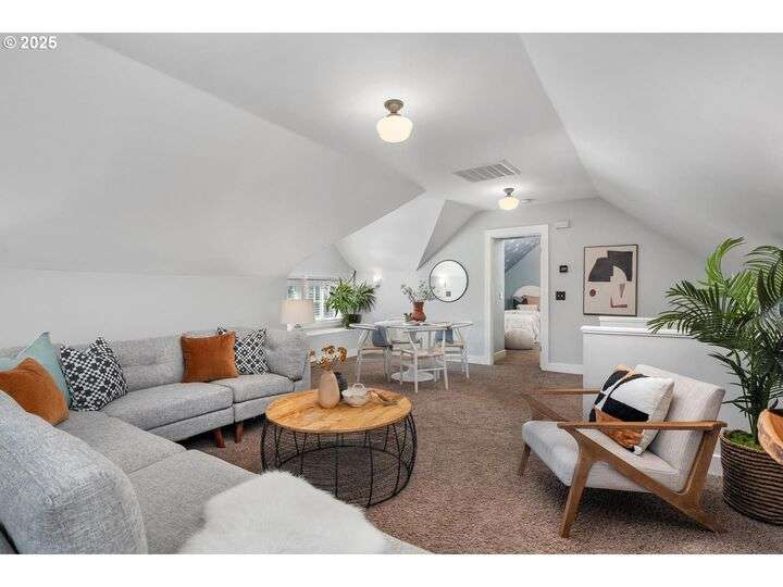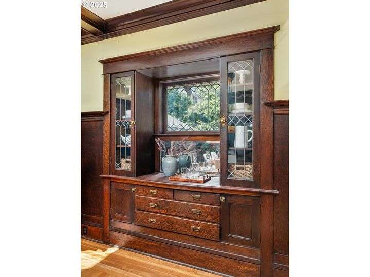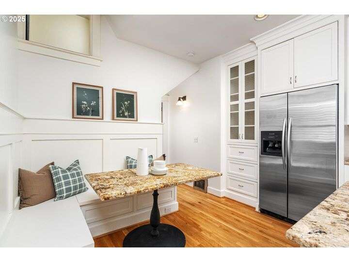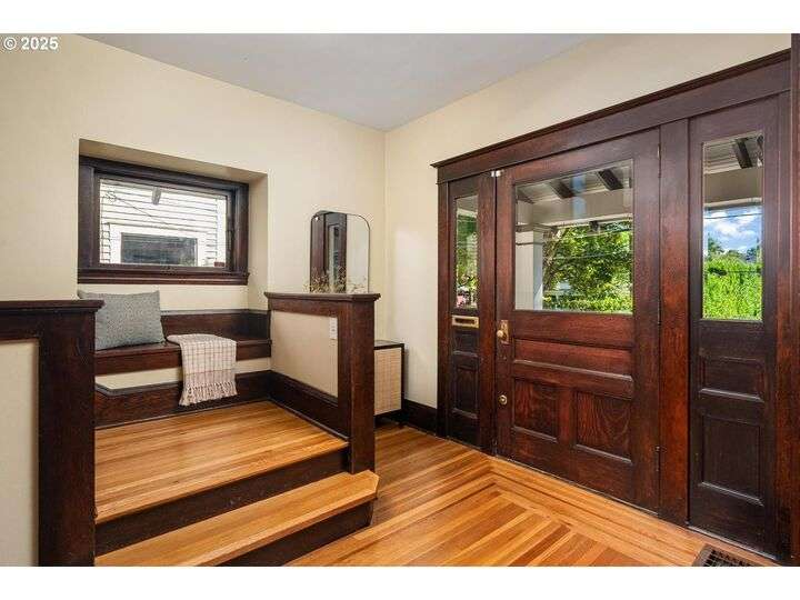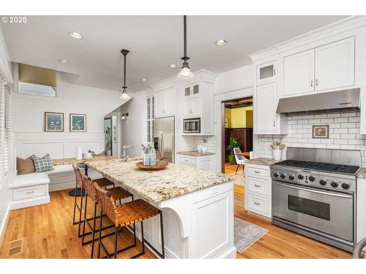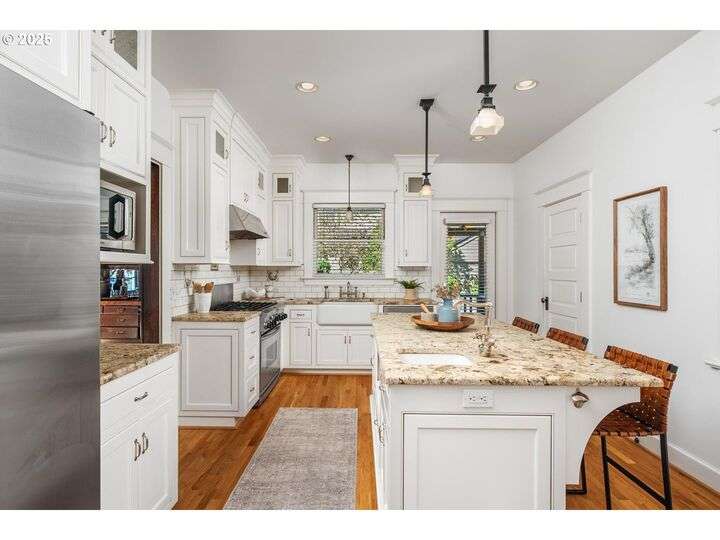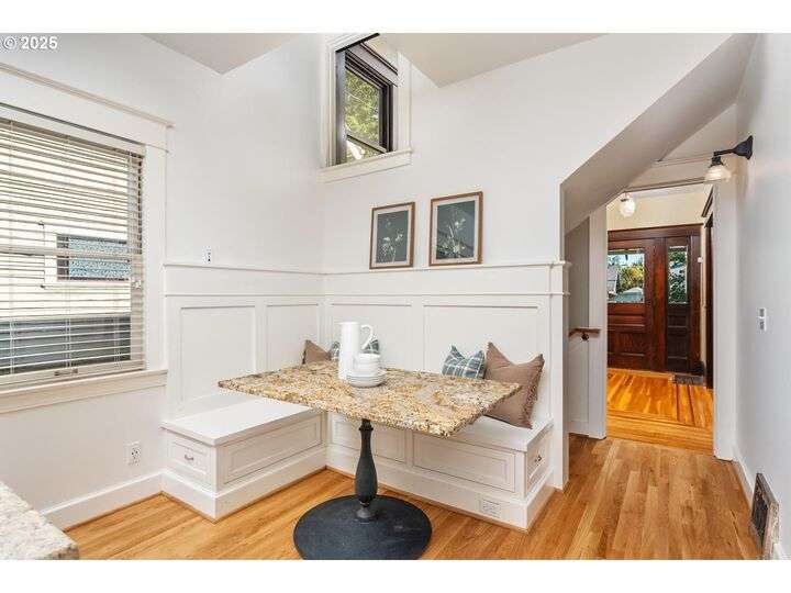 1911 Irvington Grande Dame! Don't miss this soaring four story craftsman on one of Irvington's most cherished streets. Incredible architecture blends seamlessly with tasteful updates across 3600 square feet. The main floor features stunning millwork and casework coupled with oak hardwoods, designer colors and an amazing gourmet kitchen. Custom inset cabinetry, an expansive island, an eat-in nook with built-in bench seating, Rejuvenation lighting and a gorgeous appliance package highlight the kitchen which offers the perfect flow patterns to the backyard, main floor powder room, dining room, basement and foyer. The second floor is home to the highly sought after 3 bedroom and 2 bathroom layout. A primary suite with walk-in closet anchors the east wing, while two bedrooms and a Jack and Jill bathroom balance out the west end. Refinished fir floors, new Benjamin Moore paint and an upstairs washer/dryer closet also highlight this level. A magical third floor with stunning vaulted ceilings, an expansive bonus room and bedroom tops off the above grade spaces which make up over 2500 square feet. Moving back downstairs you will find a gorgeous, finished basement with open family room, gym/bonus area and additional office or flex space. A third full bathroom, second refrigerator, second fireplace and storage closet round out the almost 1000 square foot lower floor. Gorgeous grounds, a detached garage with updated storage and an address located with the Grant High School catchment area and just blocks to Lower Fremont Shops, Whole Foods and Irving Park make this a noteworthy property in one of Portland's most historic communities.