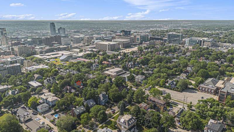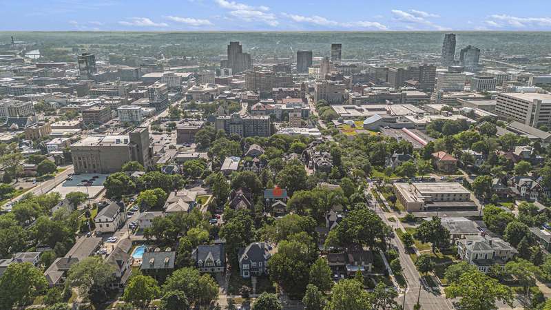 This 1920's classic in the heart of Heritage Hill has been carefully maintained and maintained over the years, offering historic details and modern conveniences. The all brick and block construction results in a vault-like quiet and fortress quality. A grand foyer and sweeping staircase welcomes you inside; the formal living room is trimmed in African mahogany with built-in cabinetry, paneled details, gas fireplace with granite and wood surround, and access to a brick patio overlooking the private, lush backyard and heated in-ground pool; a formal dining with paneled walls and cove molding flows into a Butler Pantry/breakfast room and wet bar; the updated kitchen features a 36'' Dual Fuel Wolf Range, built-in microwave/oven, pull out pantry and spice cabinets, pot filler, and copper farm sink. Upstairs you will find a huge, light-filled primary suite with private bath and adjacent dressing room; two additional bedrooms and two full baths, along with a hidden loft with two bunks, exposed original brick, and a playhouse. Head to the finished third level to a huge open flex space perfect for guest quarters, a family room, recreation, and an office! The exterior boasts red brick with limestone sills and lintels, copper gutters, functional wood shutters, and a slate roof. The extremely private backyard offers a tranquil backdrop to the city's bustle. And the three-car garage is a rare amenity in the city! Enjoy the very best of urban living - just minutes from Medical Mile, downtown, Uptown, highways, and so much more.