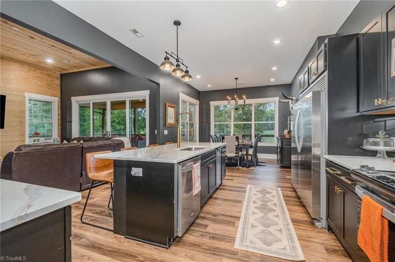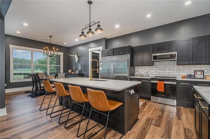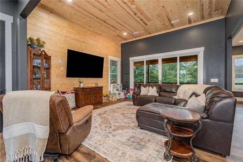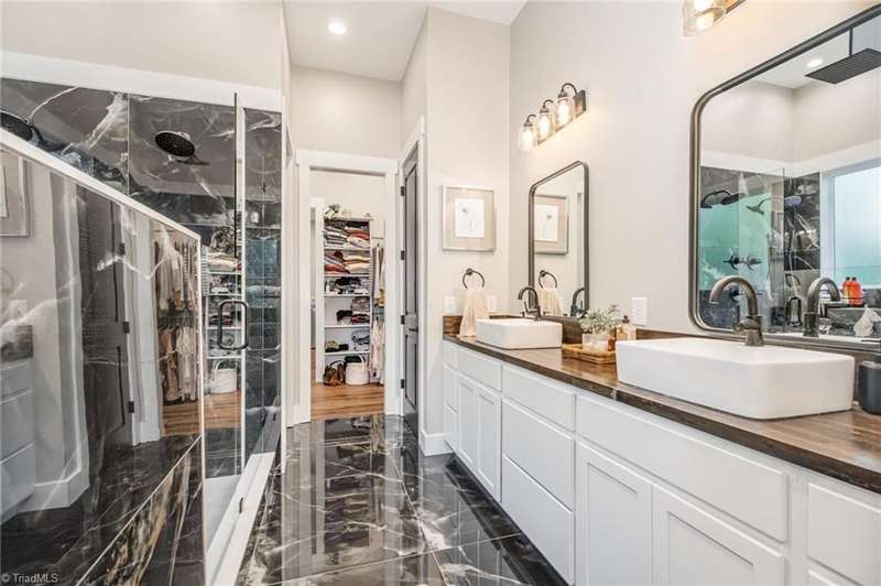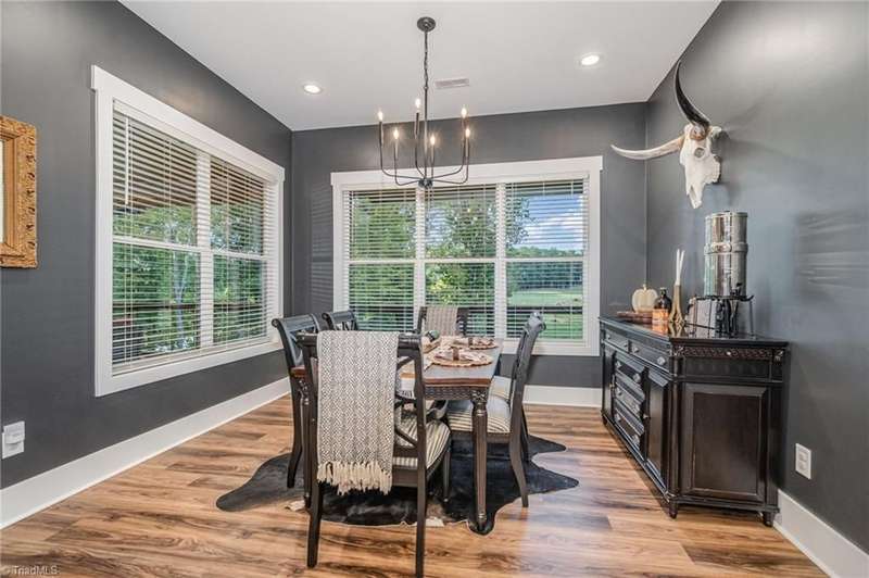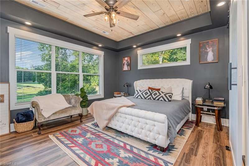 Welcome to a stunning blend of modern craftsmanship and timeless elegance. Completed in 2024, this custom home features seamless luxury vinyl plank flooring, 10-foot ceilings throughout, and a dramatic 12-foot living room ceiling that enhances its open design. The chef's kitchen is an entertainer's dream with a walk-in butler's pantry for effortless prep and hosting. The primary suite offers a private retreat with deck access and a spa-inspired bath featuring a freestanding tub, rainfall shower, dual vanities, and a walk-in closet connecting to the laundry and mudroom. The finished lower level includes a secondary living area, office, full bath, and two additional bedrooms?ideal for guests or multigenerational living. Overlooking the 13th and 14th fairways, the outdoor spaces invite peaceful mornings and golden-hour views in a truly serene golf course setting.
