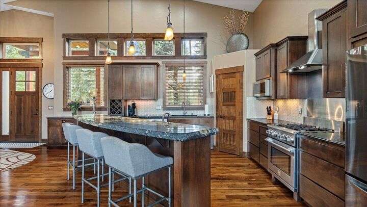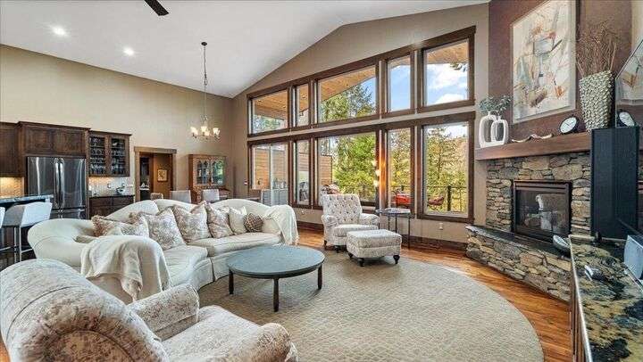 This stunning craftsman home sits adjacent to the Kalispel Golf Club with breathtaking views & main-floor living. Nestled in the exclusive Highlands community, this home features a grand great room with high vaulted ceilings, expansive windows, gas fireplace & rich walnut flooring. Step out to the spectacular tongue & groove pine covered deck showcasing territorial & fairway views. The gourmet kitchen is a chef’s dream boasting a generous center island, custom-built cabinets, granite countertops, high-end appliances & walk-in pantry. Indulge in the luxurious primary bedroom with more views, large walk-in closet & en suite bathroom with a beautiful opulent shower, dual sinks & vanity area. Also on main level is a guest bedroom & bath with soaking tub/shower combo & high countertops. A mudroom & laundry area add practicality to the home’s design. Daylight walk-out lower level has 3 more bedrooms and bath. Don’t miss your chance to own this exceptional home-a mere 3 min golf cart ride to the course!