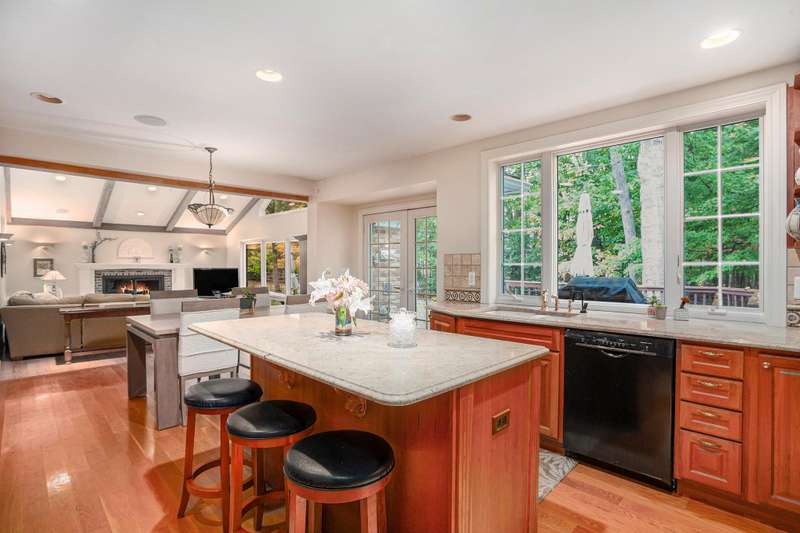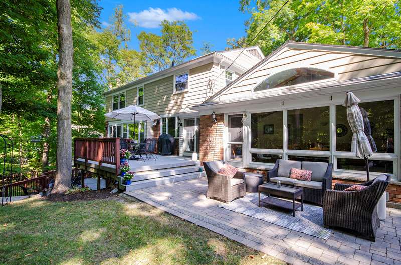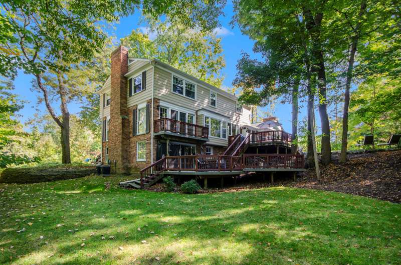 Welcome to One of Nottingham Forest’s Most Desirable Lots! Experience an “up north” feel right at home, surrounded by stunning wooded views and large open spaces. This exceptional property combines natural beauty w/ spacious, comfortable living. The inviting family room features vaulted ceilings w/ beautiful wood beams, large windows that frame the serene scenery, recessed lighting, & a natural fireplace. The space flows seamlessly into a large kitchen complete w/gorgeous wood cabinetry, an island w/ seating, & double doors that open to a wonderful backyard. Enjoy multiple outdoor areas, including a large patio and decks on two levels, w/ walkouts from the kitchen, family room, & lower level. The first floor offers generous living spaces filled w/ natural light, including a large living room w/ its own private deck/balcony. Upstairs, hardwood floors extend throughout the entire level, which includes 4 spacious bedrooms, two featuring built-in bookcases & shelving. A first-floor office provides a flexible space perfect for working from home, homework, reading, or TV relaxation, & could easily serve as a fifth bedroom if desired. The home features 2 beautifully updated full baths & 3 updated half baths, providing both comfort & convenience for family and guests. Additional highlights include a formal dining room & a large first-floor laundry. The lower level is a showstopper—featuring another fireplace, a craft area, a workout room, a half bath, & plenty of storage. Step outside to yet another deck and a truly exceptional backyard, perfect for entertaining, playing, and enjoying the outdoors. A gentle sledding hill along w/ a scenic ravine which flow along the side yard, while the property backs up to a wooded area filled w/ mature, beautiful trees that provide privacy and year-round natural beauty. With its warm character, and one-of-a-kind setting, this home offers the perfect balance of comfort, nature, & space to make memories for years to come.