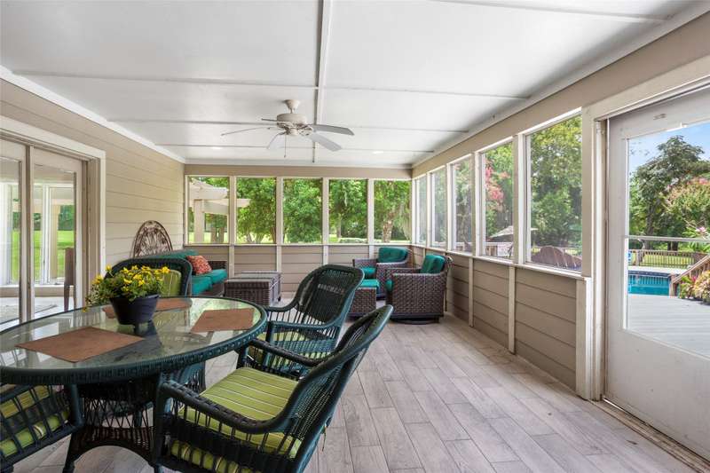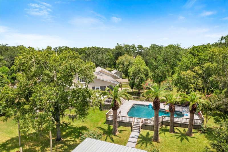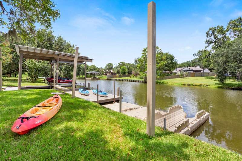Welcome to The Benson House, a stunning 5 bed, 2.5 bath retreat perfectly positioned on 2.56 acres on beautiful Dickinson Bayou with 400' of bulkhead. This beautiful home blends comfort, style and nature. Step inside its inviting interior filled with natural light, featuring a huge living rm, a screened in porch, generous bedrms, a family style kitchen and dining area. The owners suite enjoys its own spa style bath. 4 additional bedrms provide adequate space for family, guests or a home office. The heart of this home is the private fully fenced & gated backyard in a peaceful Park-like setting between two wooded areas. Lounge by the pool, enjoy weekend barbecues in full privacy. Launch your Boat or Jet Skis from the boat lift or enjoy the floater & canoe launch. The 4 car tandem garage & separate storage room both have AC. Also a storage shed, Gas Generator, ADT security and camera system are included. Was previously used as a marine scheduling office, then a profitable vrbo for 5 yrs.
