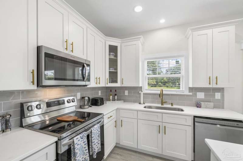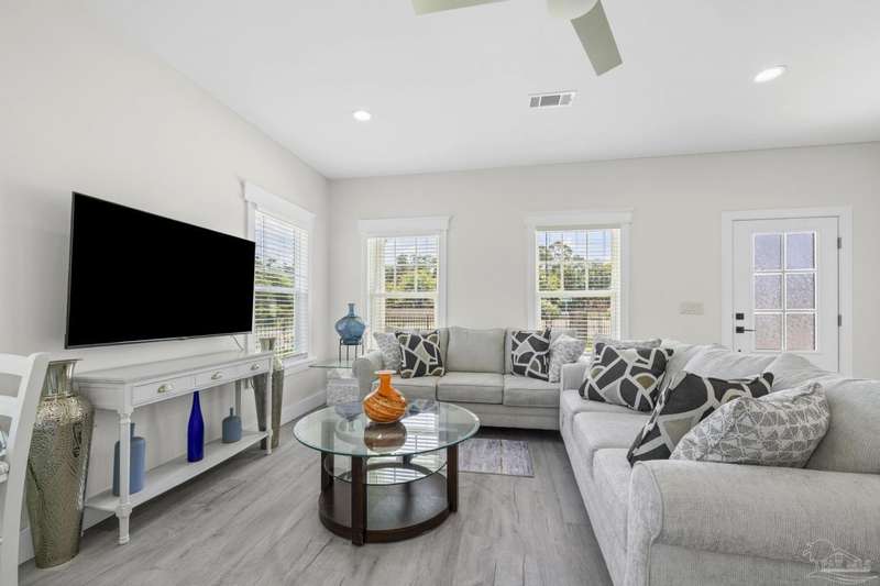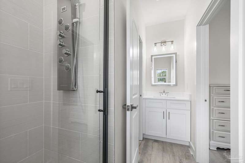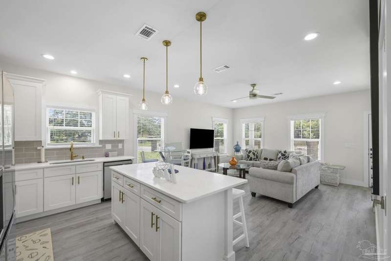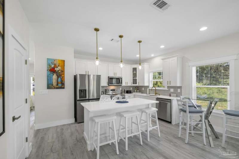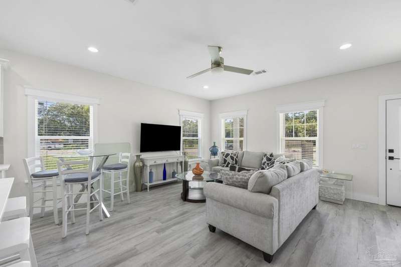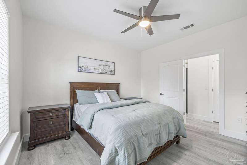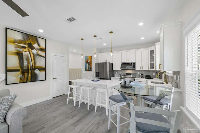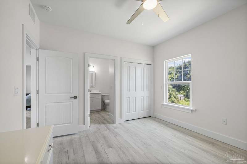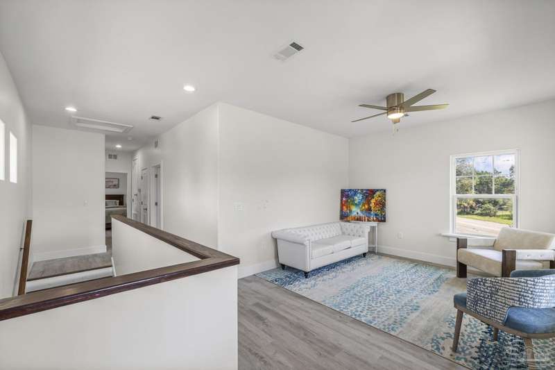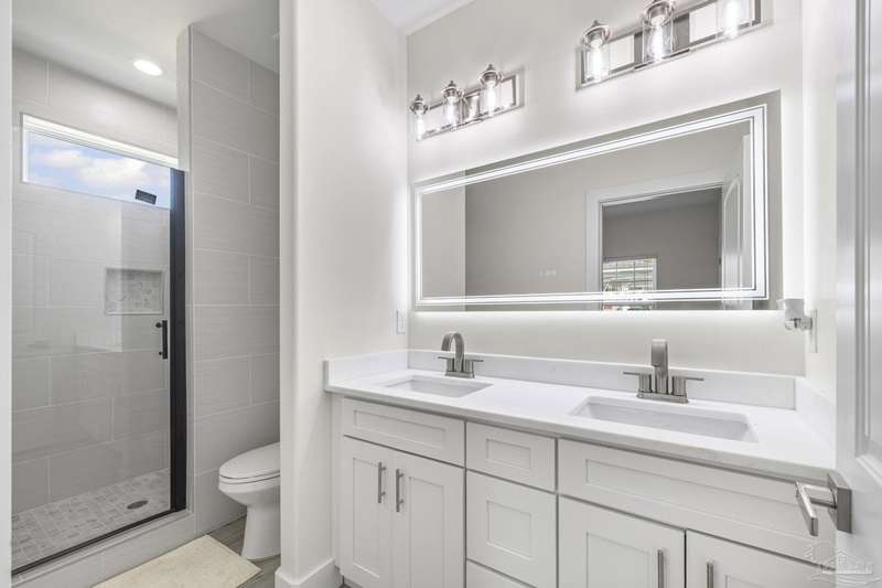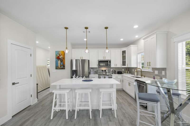 Discover modern luxury and refined design in this stunning, completed custom home featuring 3 bedrooms and 3.5 bathrooms. Ask me about the incentives the seller is offering! Each bedroom designed as a private suite with its own bathroom. From the moment you step inside, you'll notice the high ceilings, ambient lighting, and upscale finishes throughout, including granite countertops, tile backsplash, and sleek stainless steel appliances. The open concept layout flows beautifully, LED lit mirrors, and elegant touches that enhance every space. Upstairs, a versatile bonus room awaits perfect as a home office, second living room, or entertainment space. Step onto the spacious balcony to enjoy vibrant neighborhood views, ideal for relaxation or entertaining guests. Located within minuets of the Oar House and Pensacola Yacht Club, and downtown. This home combines style, convenience, and an unbeatable location
