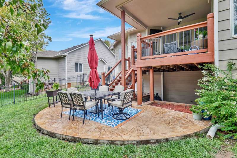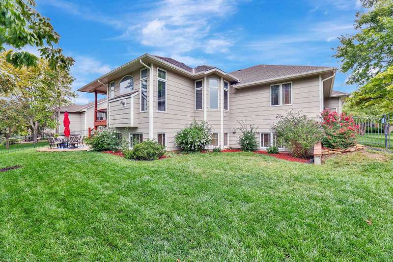 Welcome home! Nestled in the heart of Rocky Creek, this spacious 4-bedroom, 3-bath ranch offers an incredible floor plan designed for both entertaining and everyday living. With 2,192 square feet on the main level, youll find formal living and dining rooms, an eat-in kitchen, and a oozy hearth room that opens to a covered deck. The split bedroom layout includes a fantastic primary suite, while high ceilings, beautiful hardwoods, neutral paint, and oversized windows with transoms fill the home with character and natural light. The large kitchen features granite countertops, an eating bar, abundant cabinetry, stainless steel appliances, a breakfast nook, and under-cabinet lighting. Retreat to a lovely primary suite complete with a coffered ceiling, door to the deck, walk-in closet, dual vanities, make-up counter, soaker tub, separate shower, and a toilet closet. A hall bathroom with dual sinks serves the additional main floor bedrooms. Entertaining is effortless in the walkout basement, featuring a huge rec/family room with an oversized wet bar, gas fireplace, a fourth bedroom, third bath, storage, and space to finish a future fifth bedroom and fourth bath. Outdoor living shines with a covered deck, stamped concrete patio, and a fenced backyard with mature trees offering privacy. Located just one block from the neighborhood pool and playground, this home is also within the desirable Andover school district while benefiting from lower Sedgwick County taxes. Easy access to highways, exercise paths, shopping, and dining makes the location even more appealing. With generous room sizes, archways, and sun-soaked spaces throughout, this home offers both comfort and style; don't miss!