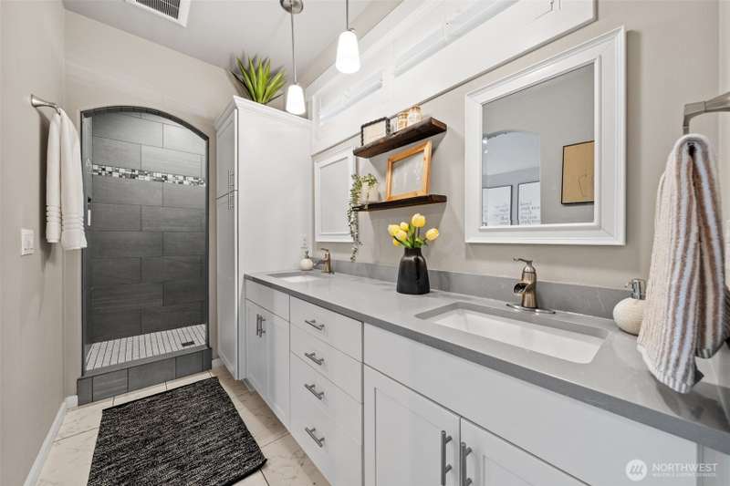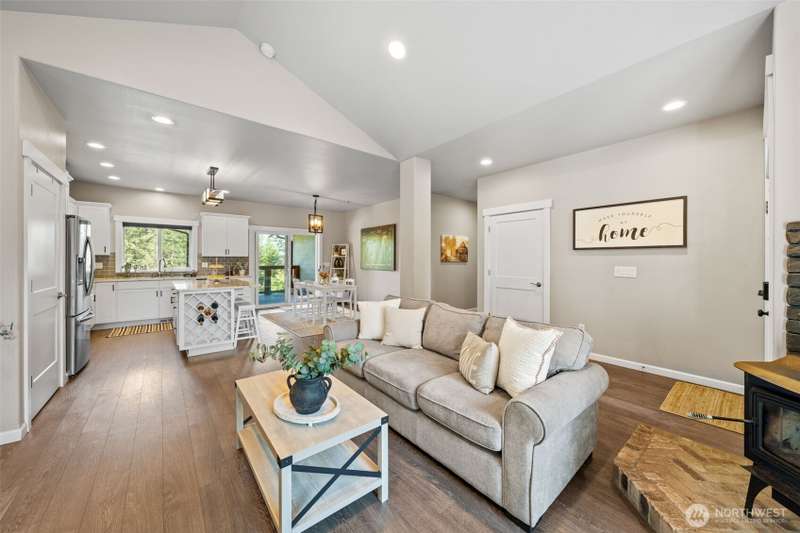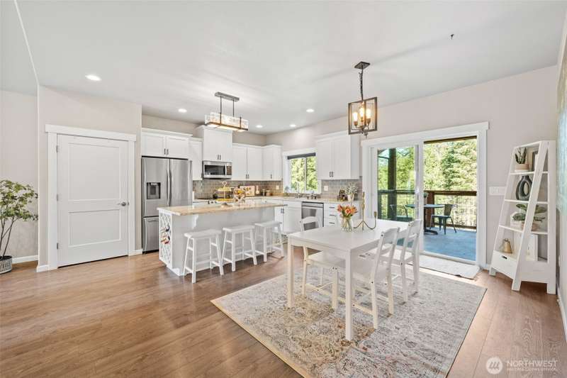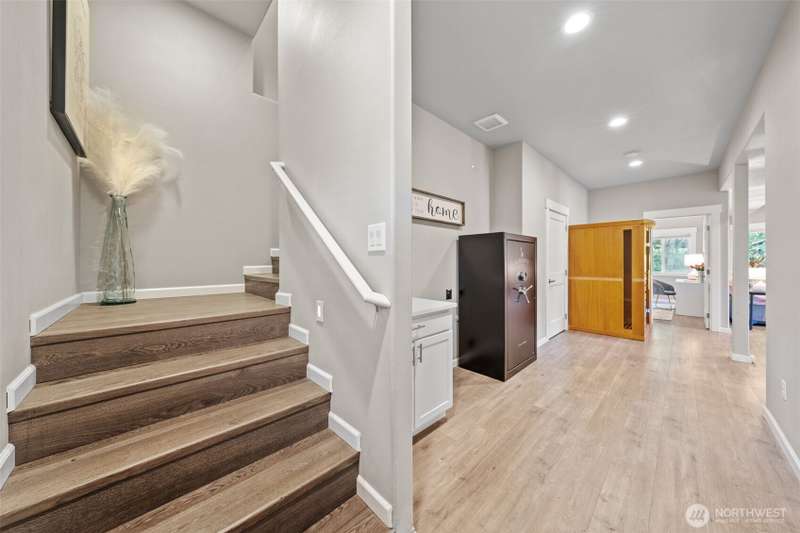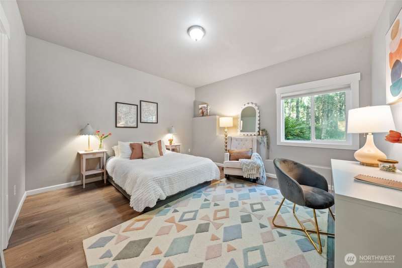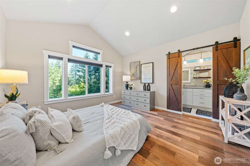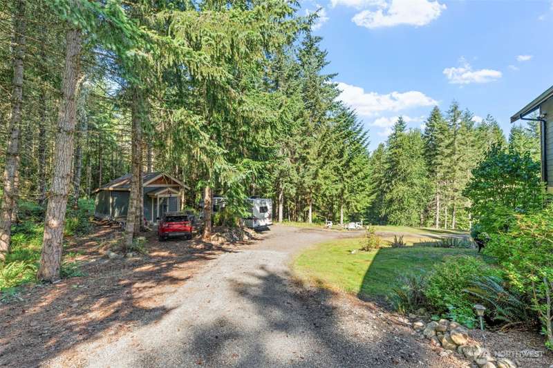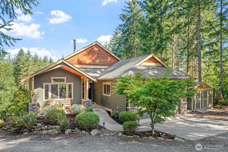 PRICED TO SELL! Discover serene living on 5 private acres in gated Carbon River Highlands! This daylight basement rambler offers nearly 2,500 sq. ft. with an open layout, cozy wood stove, and a stylish kitchen featuring quartz counters, SS appliances, and a large island. The main level boasts an owner’s suite with dual closets and spa-like bath, plus an office, bedroom, full bath, and laundry. Downstairs: oversized bedroom with walk-in, full bath, second utility, pellet stove, sauna, and generous storage. ADU Potential!! Enjoy a 3-car garage (2 up, 1 down), tool shed, fenced deer-proof garden, RV parking with 30-amp hookup, and generator wiring—your private retreat with modern comforts!