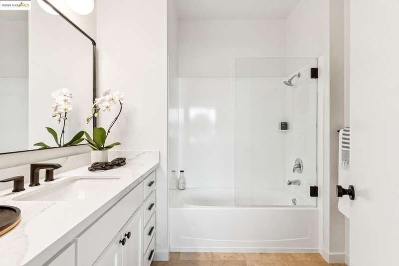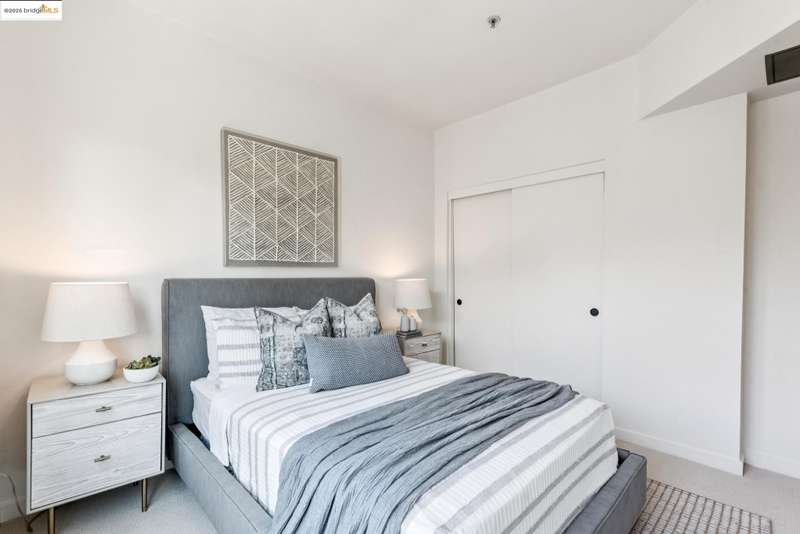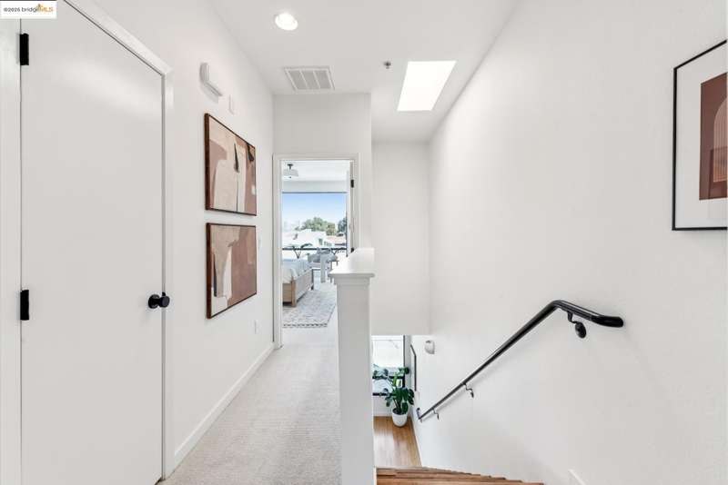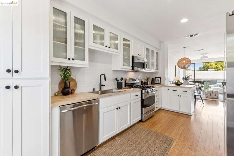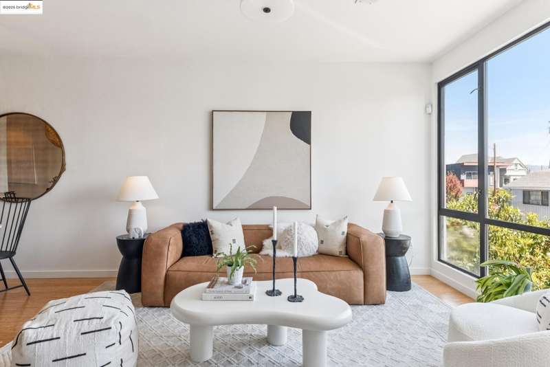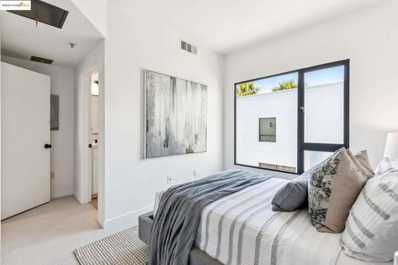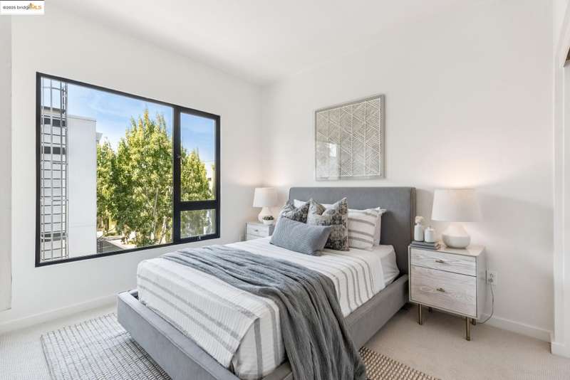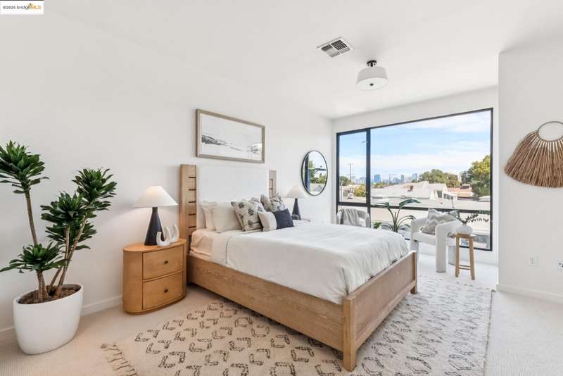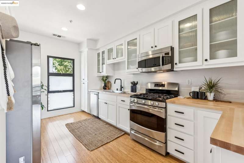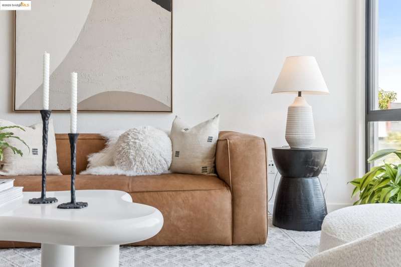 Stylish W Oakland townhome style condo residing in the Zephyr Gate community of Oakland’s Prescott neighborhood blends smart design with modern comfort. Step up to the welcoming open concept 2nd floor, where high ceilings, crisp white finishes & warm bamboo flooring elevate the bright interconnected living & dining areas. Whether you're hosting a celebration or unwinding in seclusion, you'll enjoy the practical yet refined kitchen space complete with butcher block countertops, glass-inlaid cabinets, sophisticated backsplash & a suite of stainless-steel appliances. Retreat to the top floor, where two private en suite bedrooms provide privacy & the spacious primary suite offers captivating cityscape views. Attached 2-car tandem garage has interior access for added convenience while seamlessly merging with the clean, contemporary feel of the complex. Just blocks from Raimondi Park, where you can catch the Oakland Ballers. Enjoy the Prescott Night Market with food vendors & live entertainment, West Oakland Farmers' Market, Live Music Fridays, trivia night, movement/mobility classes & more. Close to W Oakland BART with easy access to I-880, I-80, I-580 & CA 24 to explore Alameda’s coastline, downtown Oakland scene, or the vibrant diversions of SF. Start your next chapter right here!