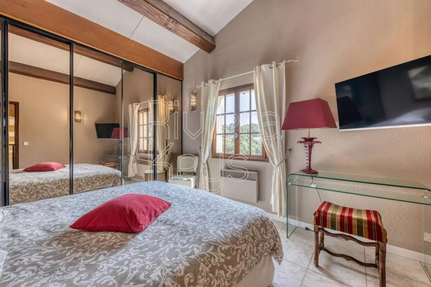 Located in one of the most desirable areas of Fréjus, in a peaceful and lush setting, this beautiful property includes a 5-room main villa and a 3-room guest house, all set on a 1,620 m² plot.The main villa, with approximately 150 m² of living space, impresses with its spacious layout and impeccable condition. On the ground floor, you’ll enjoy a bright, open-plan living area with a fully equipped kitchen, dining space, and air-conditioned lounge. A shower room with toilet and a walk-in dressing room complete this level.Upstairs, the night area offers three bedrooms, plus an additional room with sloped ceilings that can be used as an office or walk-in closet, along with a bathroom and separate toilet.The guest house, fully renovated in 2024, offers around 80 m² and connects directly to the main home. It is fully air-conditioned and features a living room with fitted kitchen, a dedicated office area, two bedrooms, a shower room, and a separate toilet — perfect for hosting family and friends or for a rental project.The outdoor space is beautifully maintained: generous sun-drenched terraces, a recently refurbished heated Balinese-style pool, a welcoming summer kitchen, and open views with complete privacy.A cellar and several parking spaces complete this exceptional property.