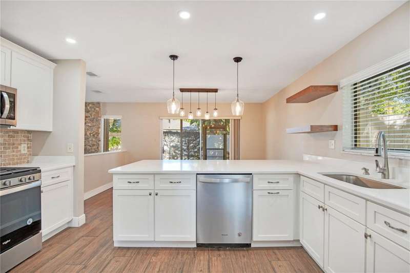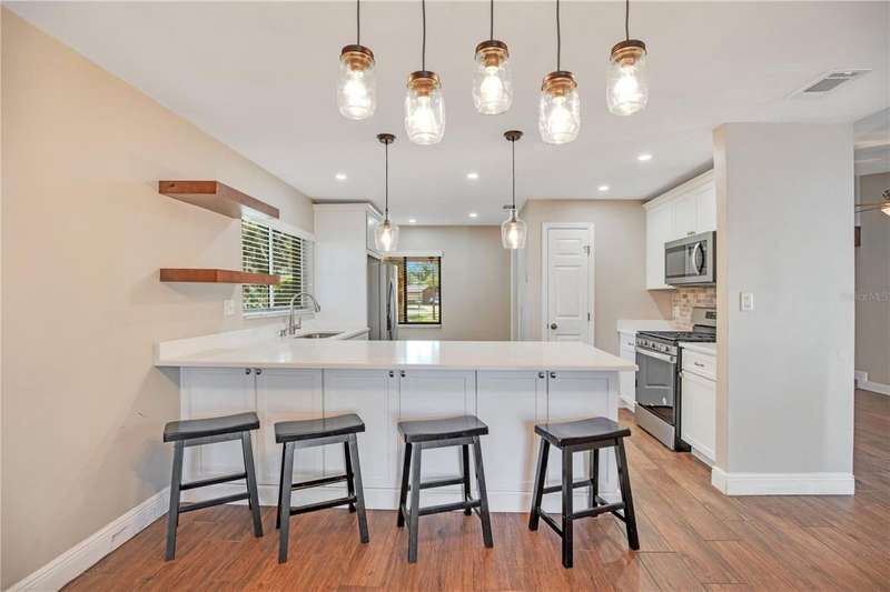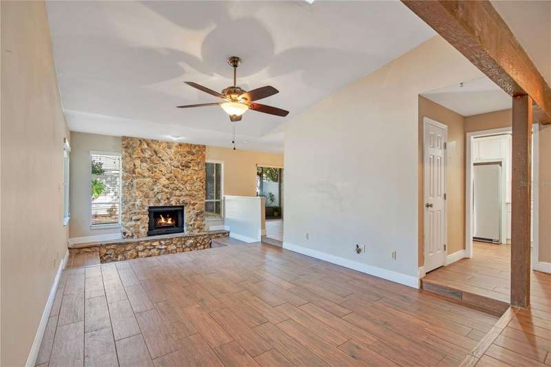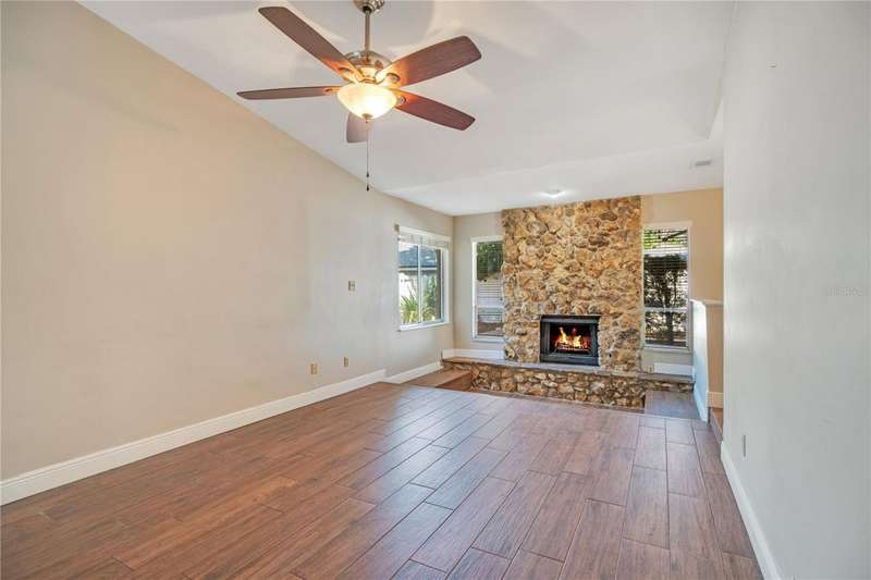 One or more photo(s) has been virtually staged. Are you searching for a move-in ready home in a prime Casselberry location? Whether you're looking to raise a family or downsize into something more manageable, this beautifully maintained three-bedroom, two-bath home with 1,547 square feet of living space is the perfect fit. Nestled on a desirable corner lot in Sausalito Shores, the property offers stunning curb appeal with its well-manicured lawn and the timeless charm of mature oak trees providing shade and character.Step inside and fall in love with the thoughtful updates throughout. The home greets you with wood-style ceramic tile flooring, adding warmth and rustic elegance. The spacious living room, complete with a cozy wood-burning fireplace, is the ideal gathering spot for holidays, game nights, or quiet evenings. Imagine sipping hot cocoa by the fire while making cherished memories with loved ones.The updated kitchen is a chef's delight, featuring modern cabinetry, quartz countertops, stainless steel appliances, and a gas oven-a rare find in Florida homes. Your private owner's suite is tucked away for peace and relaxation, complete with a spa-like bathroom boasting dual sinks and quartz counters. Two additional bedrooms and a guest bathroom down the hall provide plenty of room for family or guests.The backyard is a true oasis, offering a perfect place to soak up the Florida sunshine or host summer barbecues. Living in Sausalito Shores brings so much more than just a home-it offers a lifestyle. With an optional HOA, you gain access to fantastic amenities including a private boat ramp to Lake Howell, a clubhouse, pavilions, dog run, playground, and even boat or RV storage.The location is truly unbeatable. Conveniently situated near SR 436 and Red Bug Lake Road, you'll find everyday essentials within easy reach, while major destinations like Disney and the Kennedy Space Center are only about 45 minutes away. I-4 is just 15 minutes from your doorstep, and nearby parks like Wirz Park, Lake Concord Park, Secret Lake Park, and Wheels Park East and West ensure there is always something to enjoy just minutes from home.This Casselberry home for sale is ready for its next chapter-and its next owner. With everything you could want and more, it won't last long. Schedule your private showing today and experience 402 San Leandro Dr for yourself!