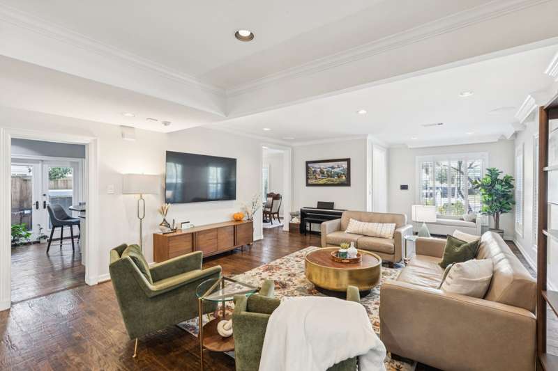 Timeless Highland Park traditional now available for lease, offering the perfect blend of comfort, elegance, and an unbeatable location. Just steps from HP Village and directly across from Bradfield Elementary, this beautifully maintained two-story home features an inviting floor plan ideal for both everyday living and entertaining. The chefs kitchen is equipped with quartz countertops, custom cabinetry, stainless steel appliances, and an open dining area. Premium hardwood floors and plantation shutters run throughout, adding warmth and sophistication. The downstairs primary suite provides a peaceful retreat with a spa-inspired bath and generous closet space. Upstairs offers two additional bedrooms with a shared bath, a secondary living area, game space, study, and a guest suite with private bath. Outside, enjoy a gorgeous pool and outdoor living area surrounded by mature landscaping. A circular drive and gated porte-cochere offer convenience and curb appeal. This is a rare opportunity to lease a true Highland Park gem in one of the most sought-after locations in Dallas.