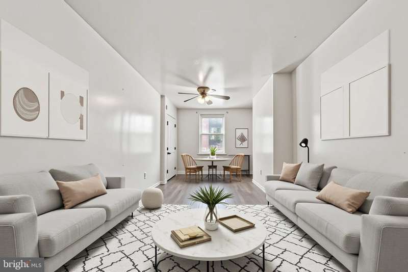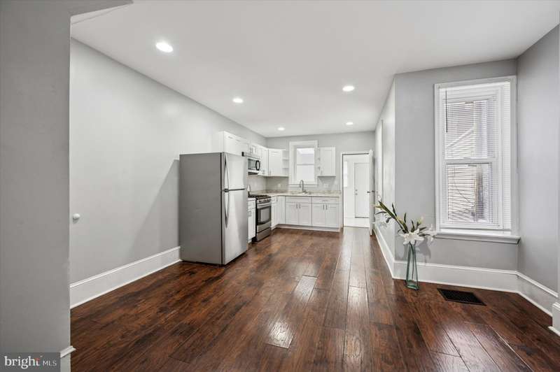 This classic porchfront rowhome on a great Cobbs Creek block puts homeownership within reach. Even better, it puts making a home in a sweet house thats full of charmstarting right off with the porch with beadboard ceiling and original front doorwithin reach. The living room has an oversized front window and decorative mantel, followed by a spacious open dining room and kitchen. An original corner closet with glass door remains, while the rest of the space has been fully updated with recessed lighting, white Shaker-style cabinets, stainless steel appliances including a Samsung five-burner gas range and a stainless steel sink with pulldown faucet. There are ample windows with extra-deep sills including one above the sink that opens to the rear mudroom with laundry hookups, allowing light to pour in from the skylight and window in that space. Up the staircase with original banister are three beds and a hall bath. The spacious primary bedroom has a bay window and absolutely gorgeous light. The rear bedroom is spacious enough for a queen bed and the middle is also a true bedroom, but would make a great home office or dressing room. The bathroom has handsome, subtly veined oversized ceramic flooring and tub surround, a functional skylight and a vintage medicine cabinet. This quiet one-way block is not a through streetit starts at Christy Rec Center, which has a pool and is currently undergoing major renovations and upgrades, and Ts at Baltimore Ave for easy access to shopping, dining and the trolley into Center City.