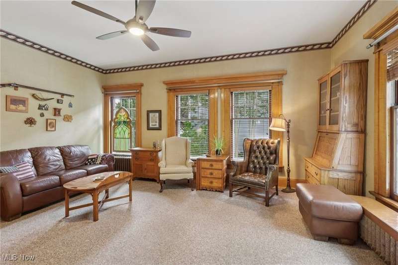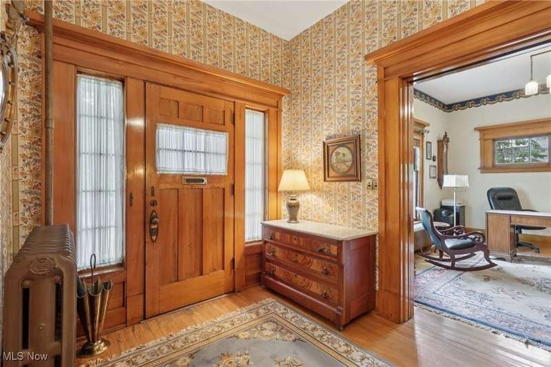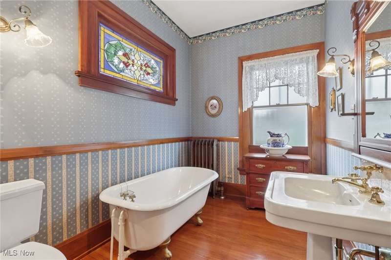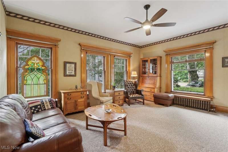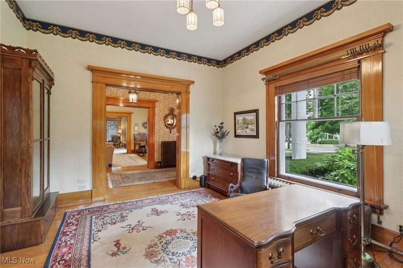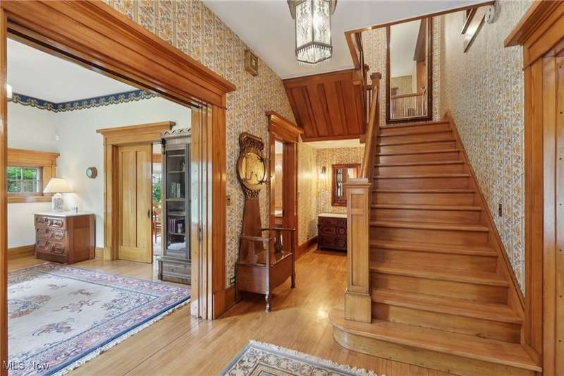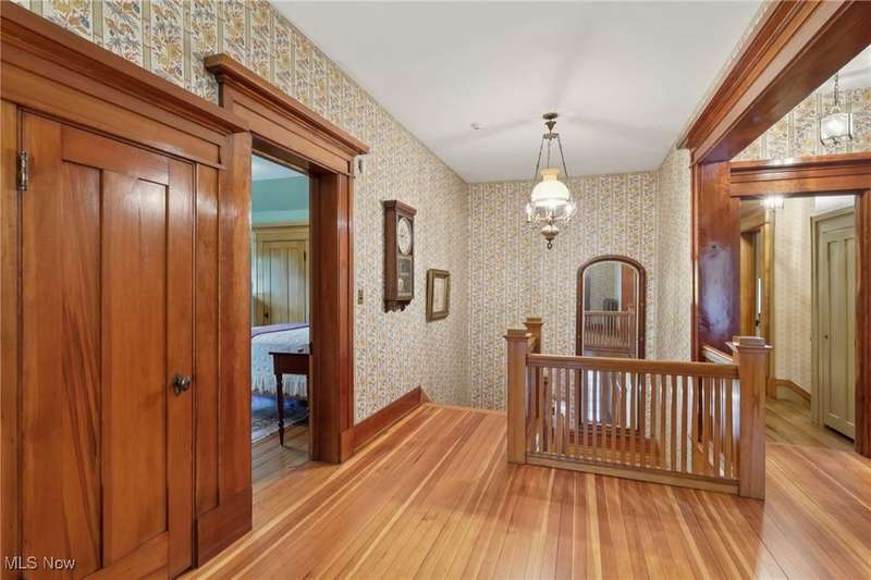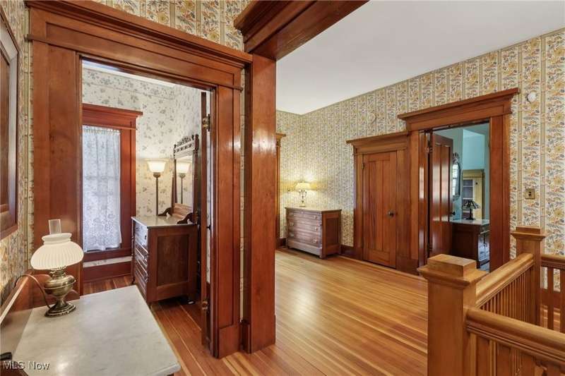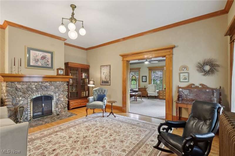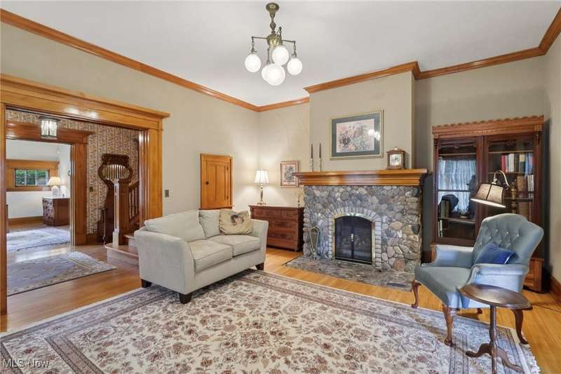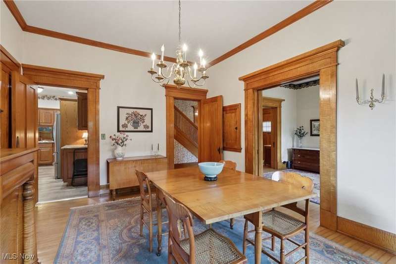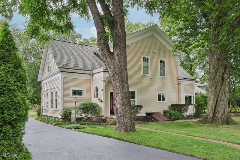Historic charm meets modern comfort in the heart of Chardon! Welcome to this impeccably maintained Southern-style Colonial, a true blend of elegance and character. Original tiger maple trim, antique fixtures, pocket doors, and leaded glass infuse the home with timeless appeal. The first floor offers spacious living room, family room, dining, den/office, updated kitchen and full bath.Upstairs features three generous bedrooms with plenty of closet space, a flexible laundry/bonus room, and a luxurious bath with radiant heated floors, double vanity, and spa tub. Enjoy serene mornings on your private front balcony and entertain effortlessly in the sprawling backyard. The basement has a river stone foundation, and the expansive restored barn/garage?with hand-hewn beams and rich history linked to the Underground Railroad?offers endless possibilities. Walking distance from the Square, this one-of-a-kind home invites you to experience craftsmanship and legacy at its finest.