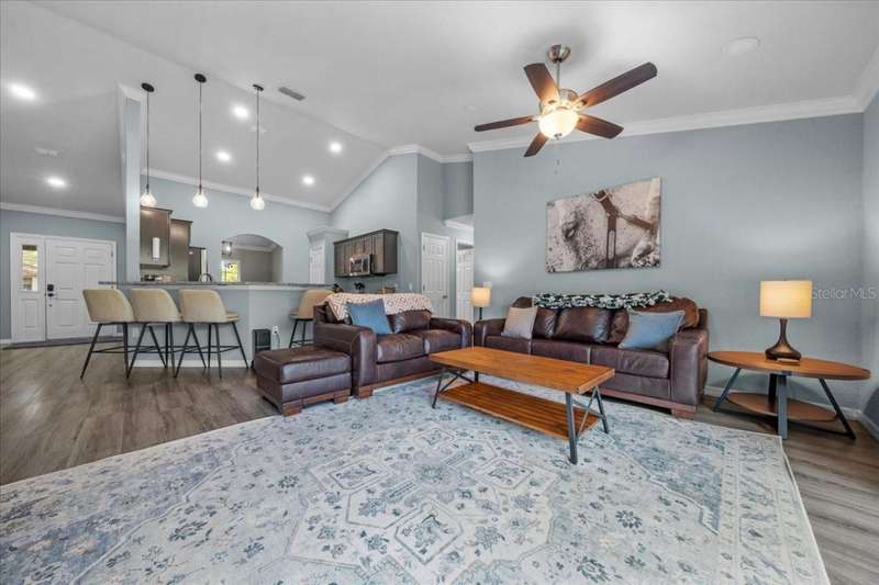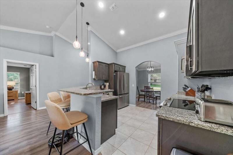Don't miss this AMAZING 4 bedroom, 2 bathroom home built in 2021 with upgrades throughout! This move-in ready home features LVP flooring, tiled kitchen and baths, separate dining room, indoor laundry room with sink, and so much more! Recent major updates include a new dishwasher, water softener system, fresh paint throughout, extended concrete patio in backyard, backyard fence, new flooring in bedrooms, upgraded lighting fixtures and ceiling fans. The yard has been treated and is weed-free for easy maintenance. Located in Ocala Highlands Estates off 441 and 326, you'll be minutes from downtown Ocala, World Equestrian Center, Adena Golf Club, Silver Springs, shopping centers, and medical facilities. No HOA, paved roads, great location. This home is ready for its new owner!