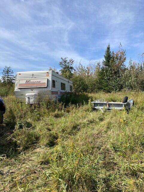 If you are looking for great deer hunting, this is it! Numerous trails entering from farm fields to the East leading to an established bedding area in tall grasslands and tag alders. There is one well built stand blind overlooking the trails to the bedding area and the large field. Easily accessible with off road vehicles or by walking. The property has a creek on the East side, and there is a good sized pond with fish. At least a 4 acre field and an established driveway into the property off 451 Hwy. There is a 30' Camper Trailer in good condition that is staying with the property at no monetary value.
