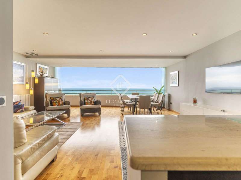 This spectacular beachfront penthouse is a unique opportunity for those seeking a one of a kind property, with stunning views of the Mediterranean and all the amenities of a high-end residential complex. On the main floor , the property offers a spacious and bright living room with large windows that flood the space with natural light and provide uninterrupted views of the sea. The modern and fully equipped kitchen is the perfect place for food lovers. This level also features a bedroom , ideal for guests or as a versatile space, next to a guest toilet. The upper floor is designed as a truly private retreat. The main bedroom enjoys a terrace with ocean views and a private Jacuzzi, as well as an en suite bathroom and a spacious dressing room. A second bedroom with its own dressing room and full bathroom complete this floor. In the attic, an elegant office or library offers the perfect environment for teleworking or reading, always with plenty of natural light. The property is part of an exclusive gated complex that guarantees privacy, 24-hour concierge service, and a carefully curated environment. Its communal areas include three swimming pools, two paddle tennis courts, and spacious relaxation areas. The penthouse includes a closed garage and a generous storage room, adding practicality to comfort.