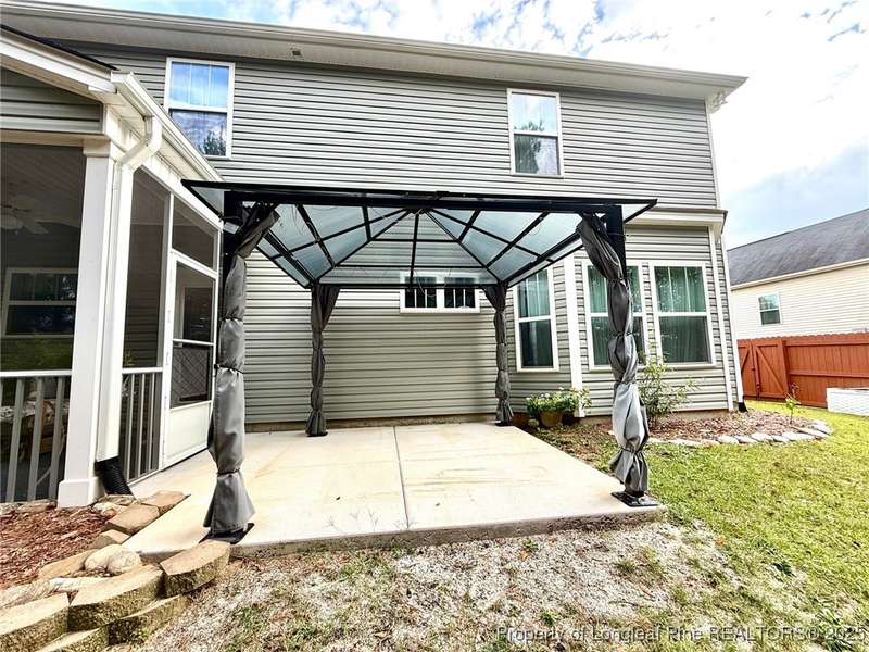 This may not be new construction but it sure feels like it! Welcome to this impeccably maintained home that offers everything you re looking for and more. With an open-concept layout, this spacious property features 4 bedrooms, 2.5 bathrooms, and thoughtful upgrades throughout. The kitchen is both stylish and functional, featuring granite countertops, a tile backsplash, a large center island, and an induction range with a built-in air fryer perfect for everyday cooking and casual entertaining. The great room offers a cozy gas fireplace, ideal for relaxing with family or friends. The first-floor primary suite is a true retreat, boasting a tray ceiling, bay window, spacious walk-in closet, and a private bath with dual sinks, a large walk-in shower with a grab bar, and built-in seating. Also on the main level, you ll find a mud bench and a full laundry room for added convenience. Upstairs, a versatile loft provides endless possibilities perfect for a media room, home office, or play area. Three generously sized bedrooms, a full bathroom with a dual vanity, and an extra storage area complete the upper level. Step outside to enjoy your private backyard oasis: a screened porch, a gazebo for relaxing, and a beautifully maintained yard with retaining walls, all enclosed by a freshly stained privacy fence. The front porch and garage feature durable polyurea flooring, and the home includes a transferable LeafFilter gutter system. Reward yourself by saving thousands from an attractive 4.25% interest rate through a VA assumption. Must be willing to substitute entitlement. Located just minutes from Ft. Bragg and part of a community with desirable amenities this home truly has it all. Don t wait schedule your showing today!