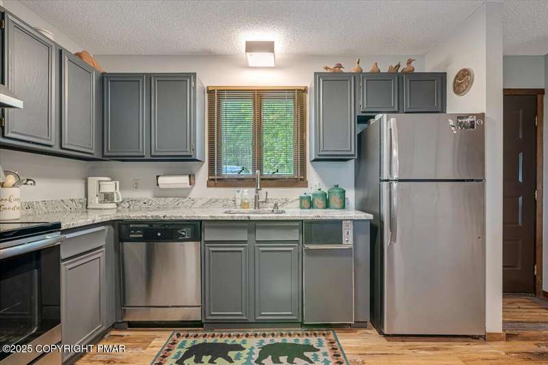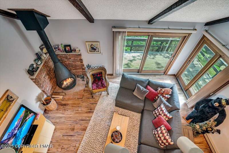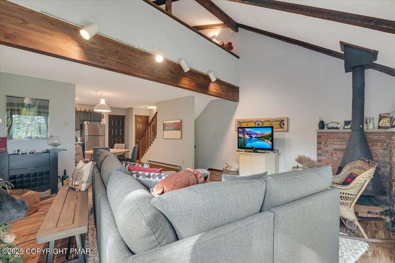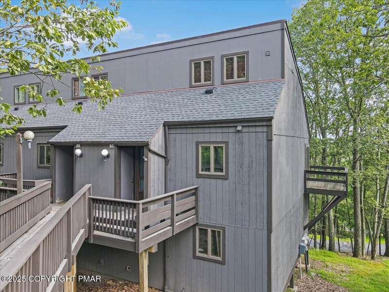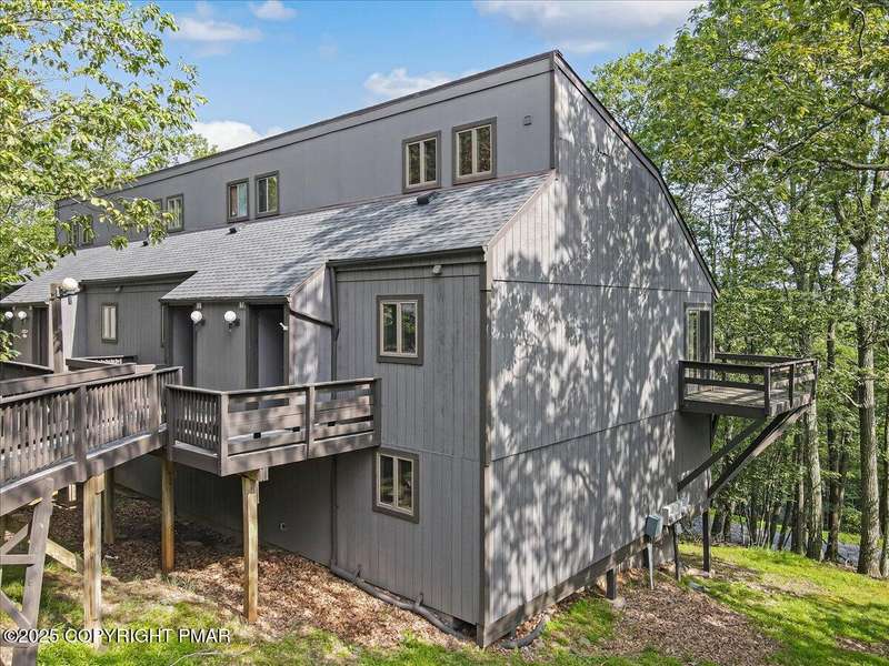 Slopeside, parking lot level, fully furnished end unit townhome in the Village at Camelback offered at a great price! 3 BR, 2.5 BA open concept, wood-burning fireplace, wrap-around deck with 2 sliders to allow in more light! Updates to kitchen, flooring, windows and sliders. Lovingly maintained by the original owners! Grab your skis and walk onto the slopes of Camelback Ski Resort or enjoy the community amenities like the indoor pool or indoor/outdoor tennis courts! Close to attractions such as Camelbeach Waterpark, Big Pocono State Park, and Pocono Premium Outlets. Short-term rentals permitted! Check with the township and HOA for more details.
