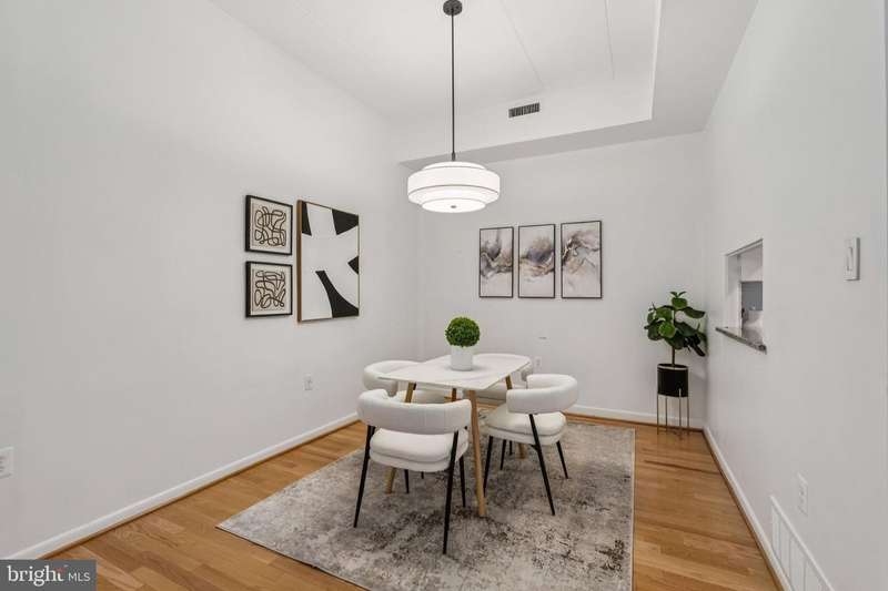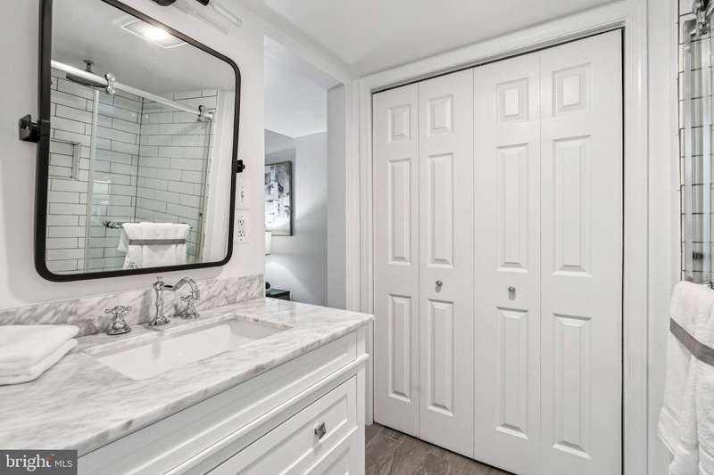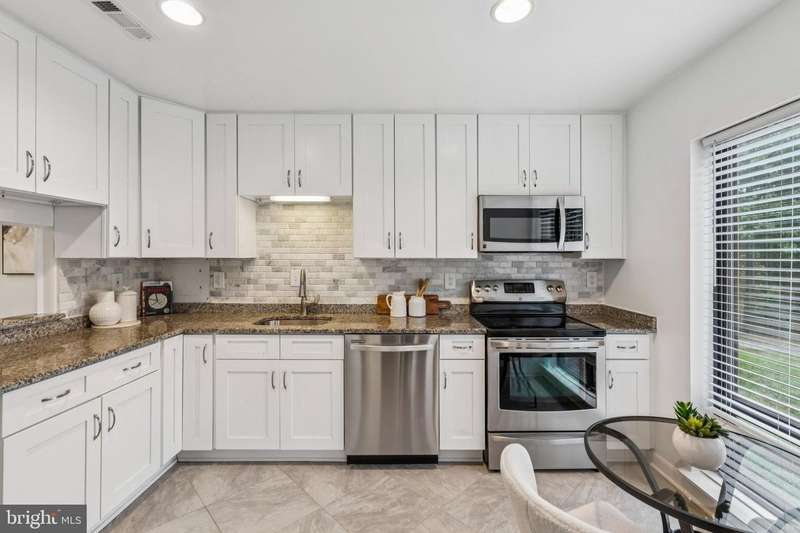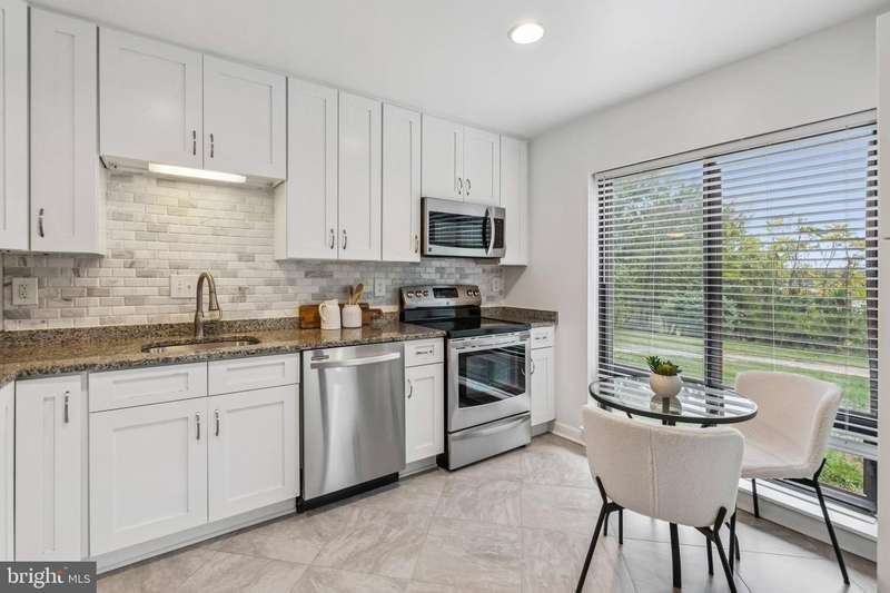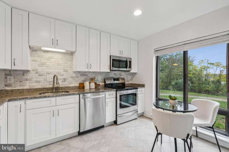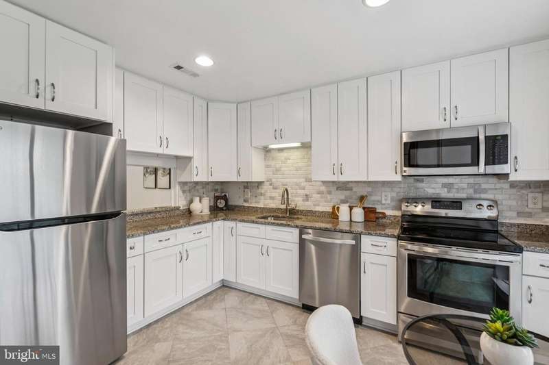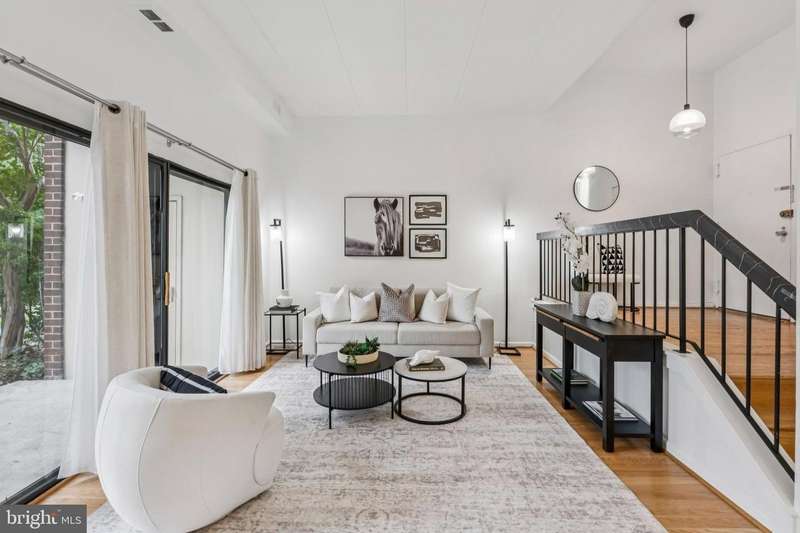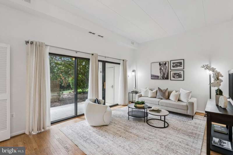 Welcome to 102 Roberts Lane Unit 100, a beautifully updated 1.5-level condo in the sought-after Fort Ellsworth community of Old Town Alexandria. This spacious home features soaring ceilings, hardwood floors, oversized windows, and sliding glass doors that fill the space with natural light. The renovated kitchen offers a brand new refrigerator, stainless steel appliances, granite counters, and a tile backsplash. Both bathrooms are elegantly updated with separate vanities and a walk-in, rain head shower. Included is a High-end GE Profile washer/dryer combo offering quiet operation, advanced fabric care, and seamless wash-to-dry convenience. The ground floor unit includes a private patio with extra storage, abundant closet space, and assigned parking (#173). Pet-friendly community with pool, party room, tennis courts, and picnic area. Prime location near King Street Metro, VRE, and all Old Town amenities. Condo fee includes heating, cooling, and water; only electric and cable extra.