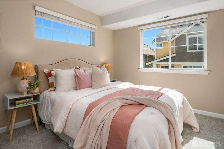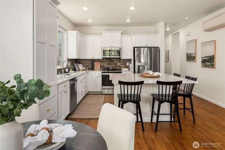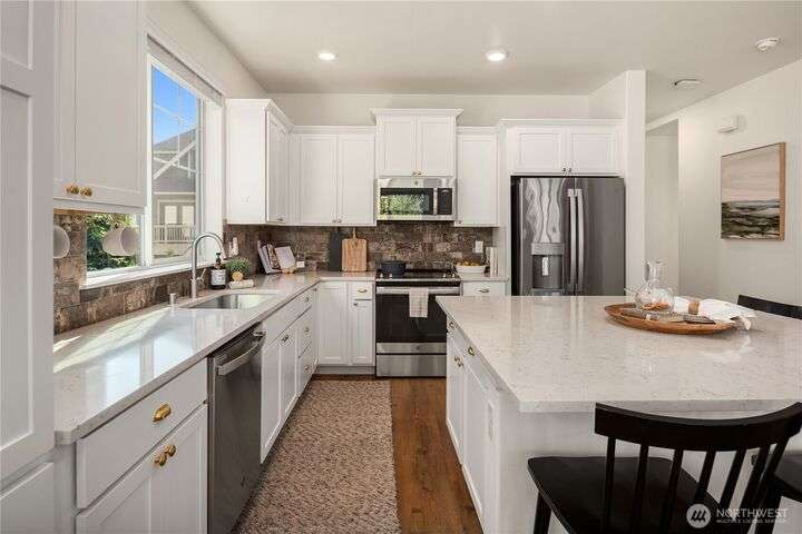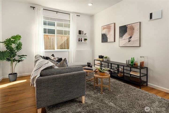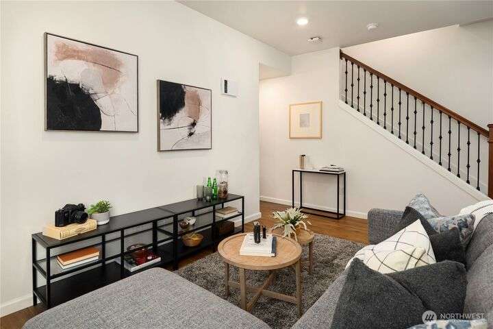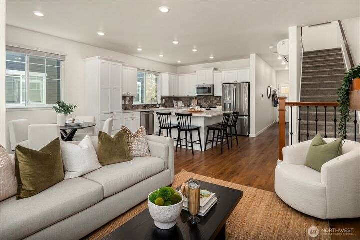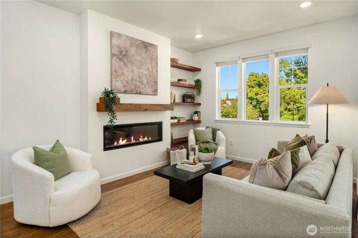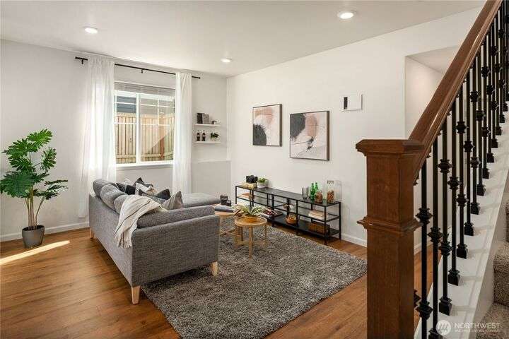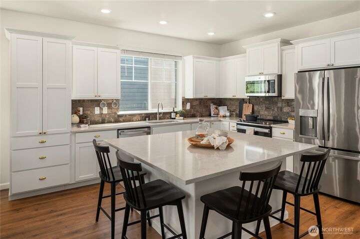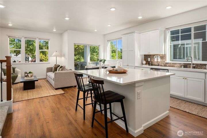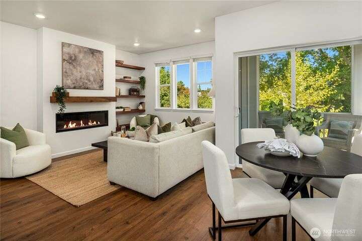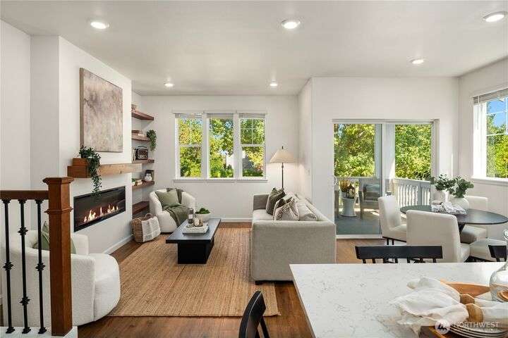 Big on style. Even bigger on space. This modern end-unit townhome stands out from the rest with 2,200+ sf of thoughtfully designed space & an abundance of amenities. Enjoy an open-concept main floor featuring a sleek kitchen with shaker cabinets, quartz counters, large island, dining, a living room with fireplace & relaxation deck. The upstairs features 3 spacious bedrooms, including a luxe primary suite with spa-like bath and walk-in closet. The daylight lower level offers a big rec room, 4th bedroom & full bath. Stay cool with A/C and enjoy the garage with extra storage space. Fenced easy-care yard perfect for pups & play. Located in a vibrant community with parks, playgrounds, and a strong HOA. Easy commuter location. Welcome home!