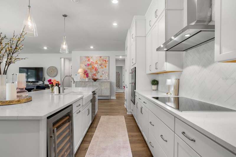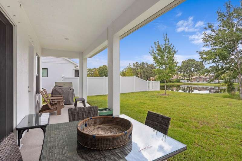SELLER OFFERING $10,000 TOWARD BUYER CLOSING COSTS! BACKYARD POOL AND PATIO VIRTUALLY STAGED. Welcome to Copeland Creek, a private gated community in Odessa, FL, featuring this stunning David Weekley “Hollowell” floor plan—a 2023-built luxury home offering 4 bedrooms, 3.5 baths, private office, flex room, and 3,200+ sq ft of elegant living space. Enjoy an open-concept layout with high-end finishes, custom upgrades, and a split-bedroom design ideal for privacy and multi-generational living. The chef’s kitchen includes stainless steel appliances, farmhouse sink, wine fridge, upgraded fixtures, and ample cabinetry—perfect for entertaining. The owner’s suite offers serene pond views, a spa-like bath, and a massive custom walk-in closet. A private guest suite with ensuite bath and separate secondary bedroom wing provides flexible living options. Additional highlights: oversized laundry room with sink and counters, mudroom with built-in drop zone, and stone-accented elevation with paver driveway. Move-in ready and built for modern living, this home offers both style and peace of mind. Located just minutes from top-rated schools, parks, trails, and the Veterans Expressway—providing easy access to Downtown Tampa, TPA Airport, and Gulf Coast beaches. Luxury. Location. Lifestyle. Schedule your private tour today!