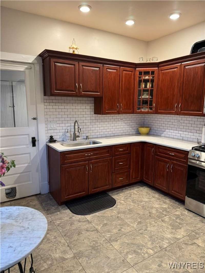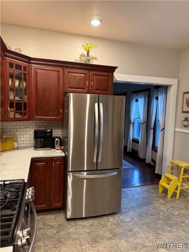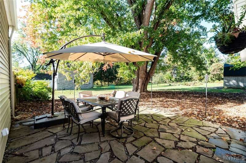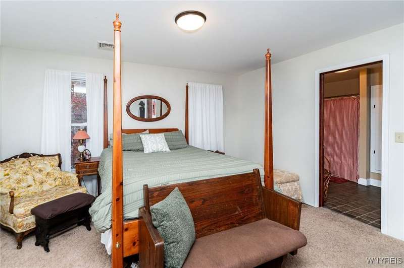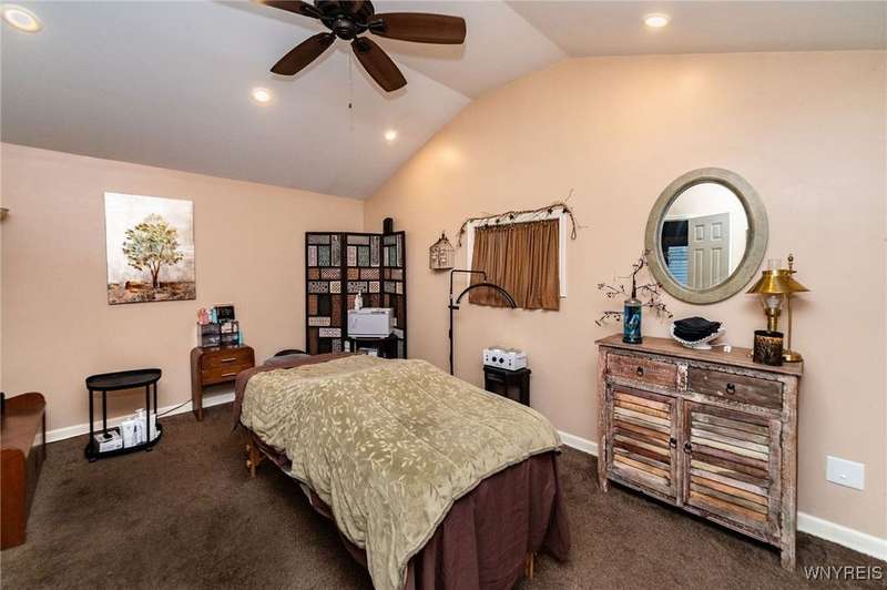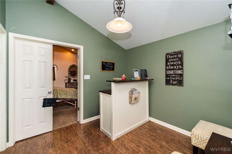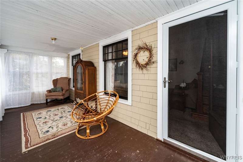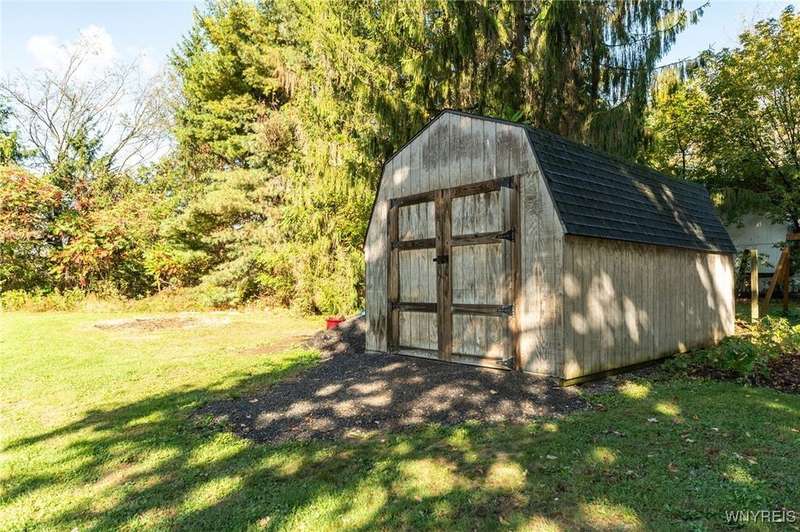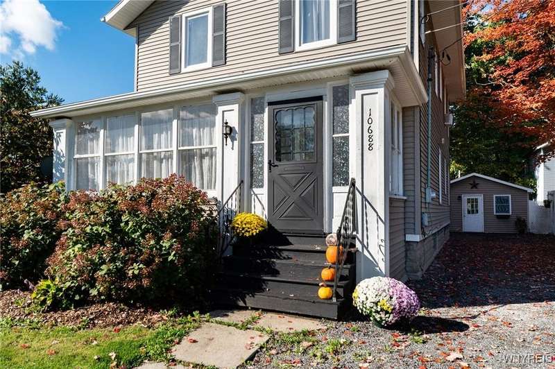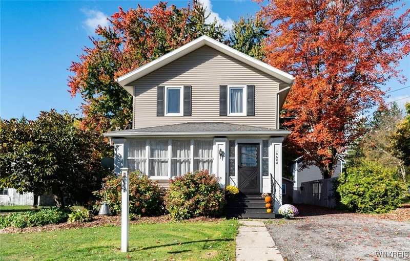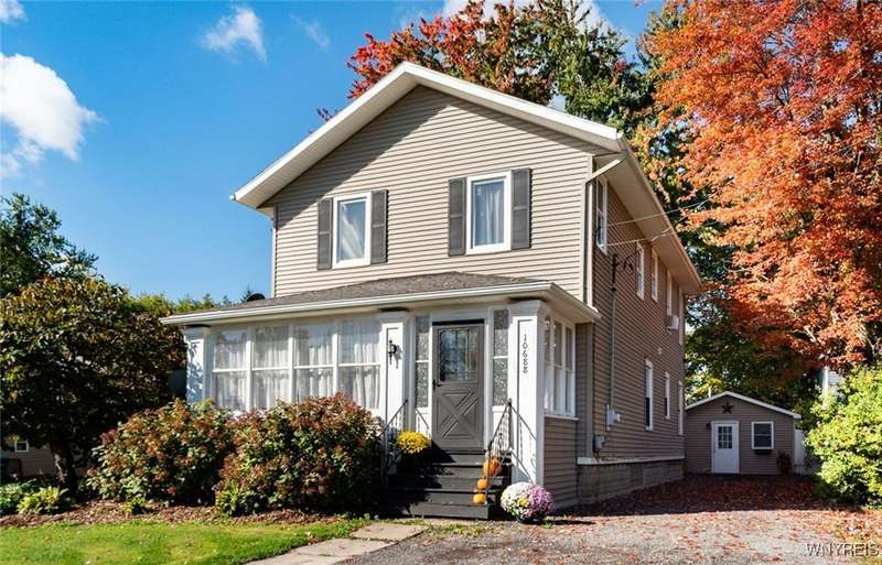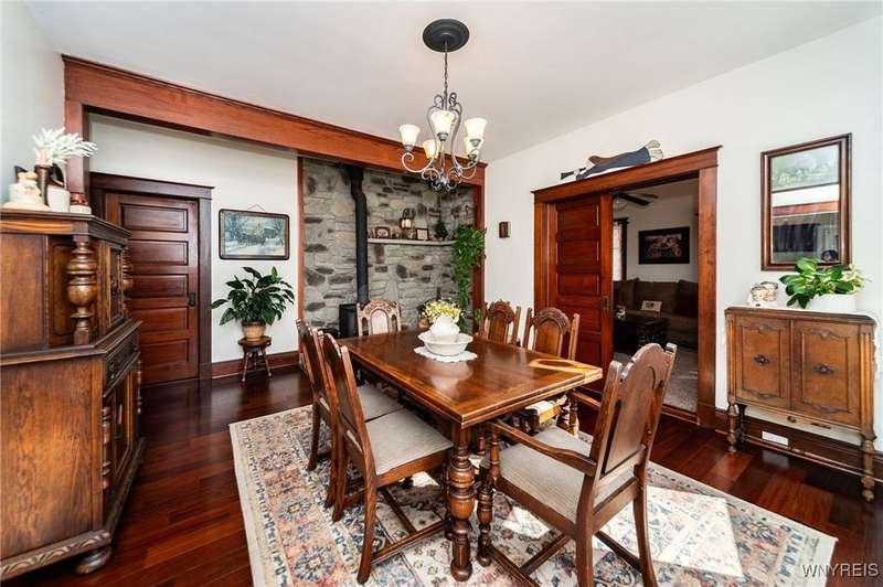 Beautiful Colonial just listed in Darien! This home has so many incredible features including a new kitchen with stainless appliances and granite countertop, stunning formal dining room with unique stone wall with wood stove and gleaming hardwood floors. Incredible woodwork throughout, with French doors leading to the living room. First floor bedroom, full bath and 1st floor laundry. Upstairs boasts 3 more beds (one primary ensuite with a second full bath). Enclosed front porch. Converted garage is currently utilized as an aesthetic center and spa with an office and bathroom. Perfect opportunity for your business, home office or easily used as an in-law set-up. Lovely rear patio with huge deep yard and 12x24 shed. So much opportunity here with such a spacious and immaculate home. A rare find in the Alexander school district.