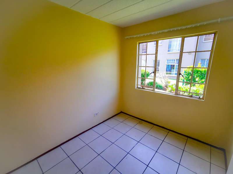 Beautiful start up home, ideal for children. Situated in a secure complex within walking distance from schools and preschools. Lock up and go with 24 hour security. This north facing home offers an open plan kitchen and lounge with a breakfast counter. Two spacious bedrooms with built in cupboards and full bathroom, one offering a beautiful view of your own neat, well maintained garden.
