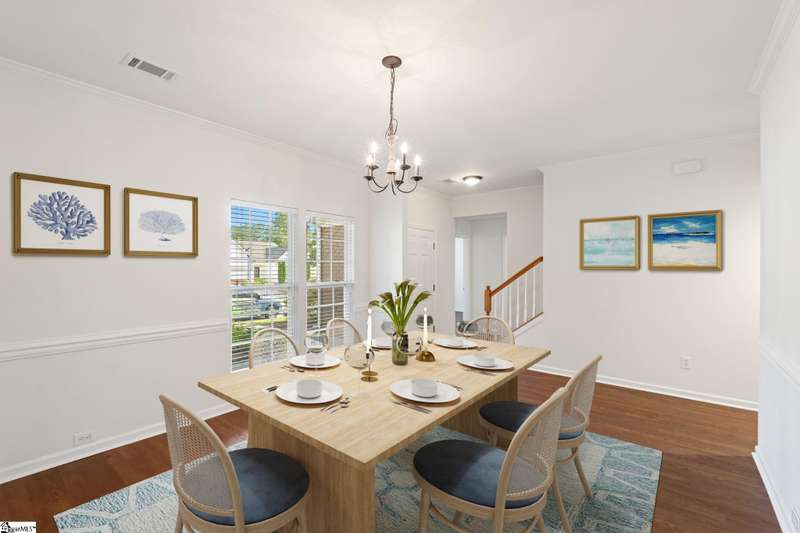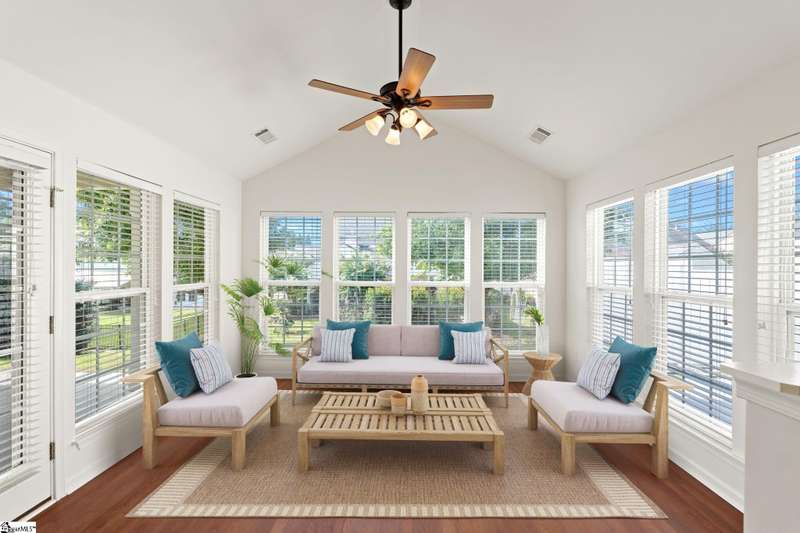 ** Huge Price Improvement and a Brand New Roof and Brand New HVAC with Transferrable Warranty! ** Enjoy low-maintenance living with lawn care included and a primary suite on the main level in the heart of Five Forks - welcome to 7 Bamburgh Brae Court. This one-owner home offers 4 bedrooms (or 3 plus a flex room), 2 bathrooms, and thoughtful upgrades throughout, with all appliances included. Tucked away on a quiet cul-de-sac, the home invites you in through a charming covered front porch and into the foyer, where luxury vinyl plank floors flow throughout the entire main level. The open yet split floor plan strikes the perfect balance of connection and privacy. To the right, a formal dining room leads into the gourmet kitchen, complete with tons of custom cabinetry, double ovens, a gas cooktop, and a generous peninsula with seating. The kitchen opens to a spacious living room featuring built-ins, a gas fireplace, and a one-of-a-kind antique salvaged mantle. Just beyond, the bright sunroom offers walls of windows overlooking the private backyard and covered patio. The primary suite enjoys its own wing of the home and features a walk-in closet along with a beautifully remodeled en suite bath, highlighted by a large walk-in shower with pull-down seat and a dual vanity. Two additional bedrooms with oversized closets and a full bath are located on the opposite side of the home, ideal for family or guests. Upstairs, a large flex room provides endless options - an additional bedroom, office, or hobby space. Practical touches include a main-level laundry room with a rough-in for a sink and a spacious two-car garage with plenty of storage. Outdoors, you’ll find a large covered patio perfect for evening relaxation, plus a second patio with a dedicated outlet ready for a hot tub or spa, all tucked behind a private fenced area. This low-maintenance neighborhood includes lawn and landscaping service along with wonderful amenities including a community pool, clubhouse, sidewalks, and more. 7 Bamburgh Brae Court is a rare gem - combining convenience, comfort, and charm. Schedule your showing today! Contact Ashley Steigerwald with Wilson Associates at 864-907-0601 or email ashley@wilsonassociates.net.