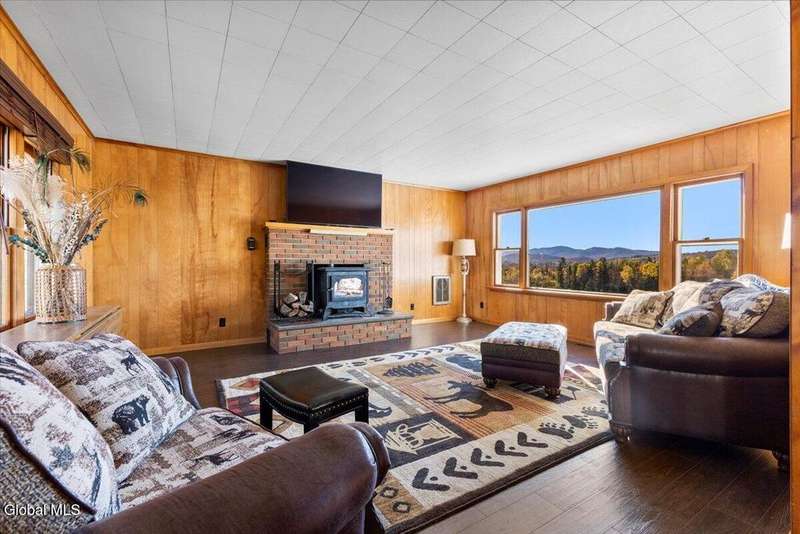 Welcome to 387 Chamberlain Road where the breathtaking views are what it's all about! Walk into this year round central Adirondack getaway and you are greeted with a large picture window that invites you to immeditaely look at the view overlooking the large neighboring open meadow where you will see wildlife through out the day. The backdrop of mountains show off beautiful sunset skies everyday! Enough about the views, the house features a beautiful brick wood burning fireplace in the main living area, a dining area with built ins, a large galley kitchen with modern stainless appliances including 2 gas ranges for the active chef in you. Wait, don't forget to check out the stunning views from the kitchen and also the adjoining sitting area! There are 2 large bedrooms and a full bath with a jetted tub shower. Outside a large expansive deck and a blue stone patio await for relaxing and entertaiing with the view to enjoy. Additonal features include central heat and air conditioning, an attached 2 car garage, full walkout basement for storage and a low maintaince yard. You are located just minutes to nearby area lakes, hiking trails, Indian Lake town center, Gore Mountain and Garnet Lake Lodge for winter skiing, A great place to enjoy year round. Schedule your showing today! You'll be glad you did!