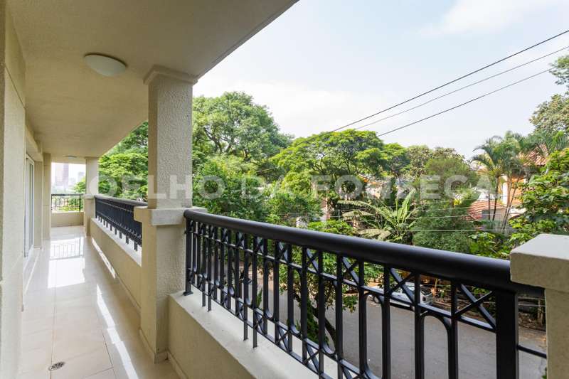 A amplitude, luminosidade e a vista para a copa das árvores encantam desde a entrada deste apartamento em rua tranquila e arborizada no Alto de Pinheiros.