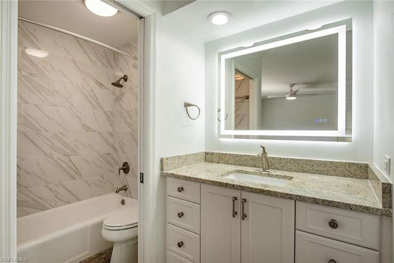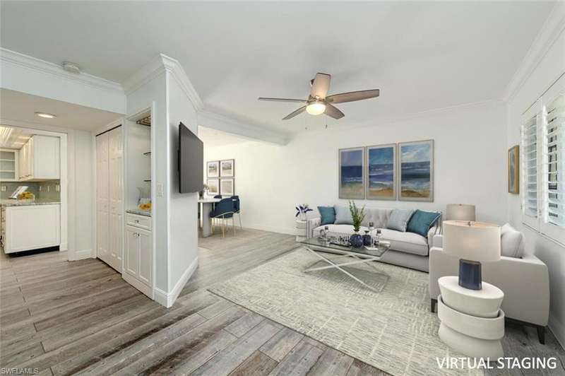 Discover this charming single-family attached villa in Old Naples, complete with a private one-car garage. Nestled in a serene, tree-lined neighborhood, it's just 3.5 blocks from the area's iconic white-sand beaches and 3 blocks from the vibrant shopping and dining on 5th Avenue South. Spanning 1,302 square feet across two levels, this light-filled home includes 2 bedrooms, 2.5 bathrooms, a 220-square-foot private backyard patio, and a 195-square-foot private garage. Inside, you'll find wood-look tile flooring throughout, elegant crown molding, and a crisp white kitchen featuring a farmhouse sink, marble countertops, a glass tile backsplash, and stainless-steel appliances. Recent updates enhance its appeal: a new HVAC system, fresh patio pavers, epoxy flooring in the garage, illuminated bathroom mirrors, a new skylight, updated disposal, washer/dryer, ceiling fans, and a recent interior and garage paint job. The backyard Jacuzzi is negotiable. Located at 185 4th Street South one o