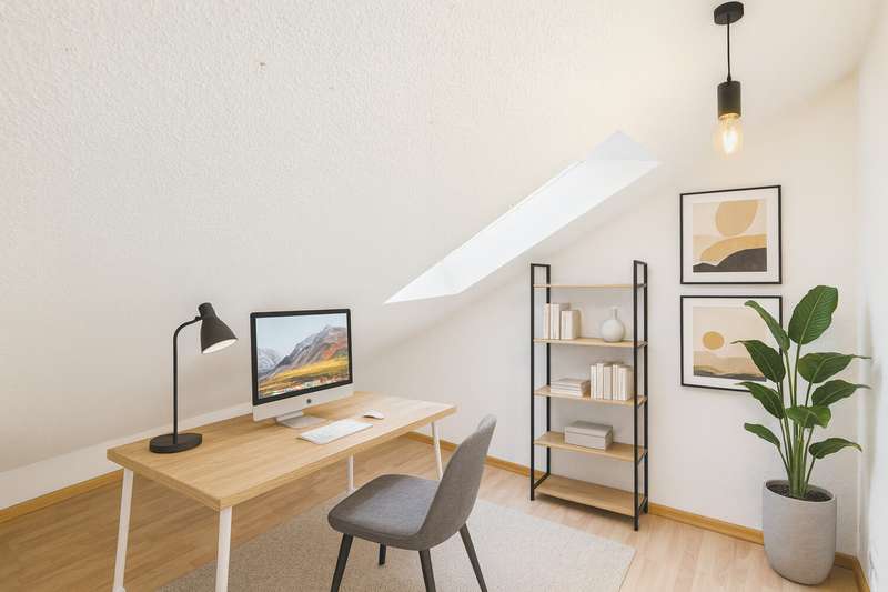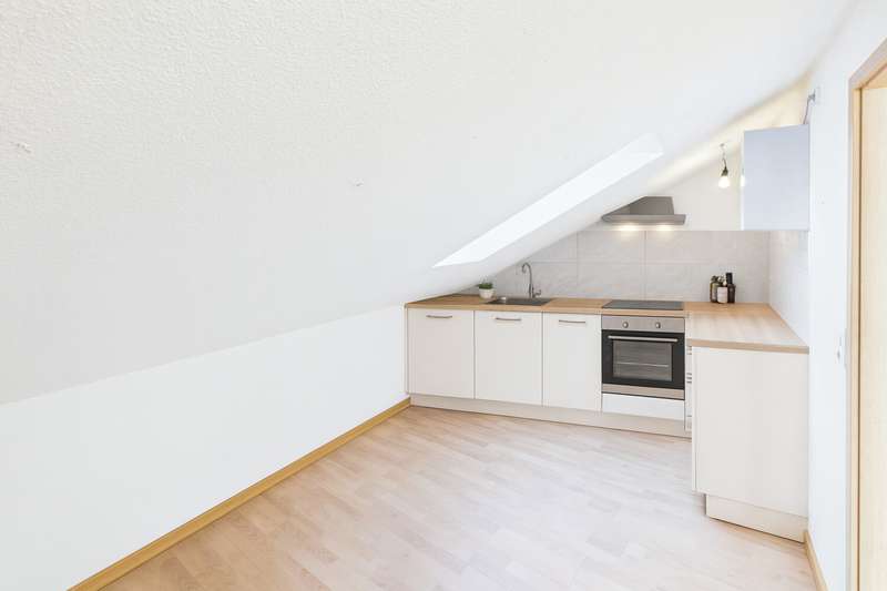 VON POLL IMMOBILIEN presents this charming 2.5-room attic apartment in a well-kept three-party house built in 1974 in a quiet location in Bergheim-Glessen. With around 80 m² of living space, the apartment boasts a spacious layout and a bright, inviting ambience. The small community of owners is characterized by a pleasant and friendly atmosphere. The entrance leads directly into the spacious living area. An existing opening allows the living room to be connected to the bedroom if required, thereby enlarging it even further. Both the living room and bedroom are flooded with light thanks to the dormer window and offer a wide range of possible uses. All rooms lead off the spacious hallway: a separate kitchen, a bathroom with shower and a further room that is ideal as a dressing room or office. The offer is rounded off by a separate cellar room and an attic, which provides plenty of storage space. There is a parking space in front of the house. A new, efficient gas heating system was installed in 2023. This apartment is particularly attractive for singles or couples looking for a quiet, yet centrally located apartment, as well as for professionals who want to combine living comfort with practical extras in a natural environment with good connections.