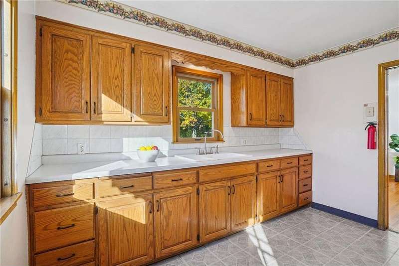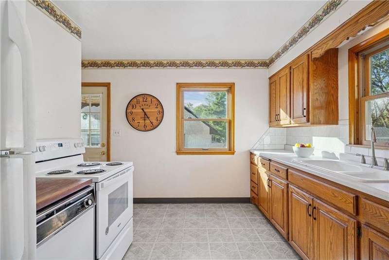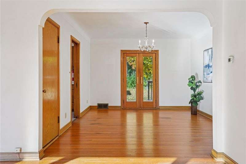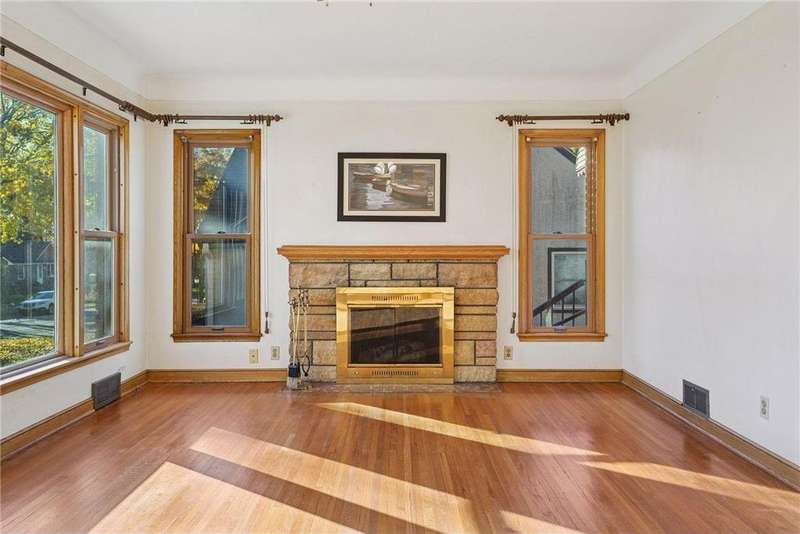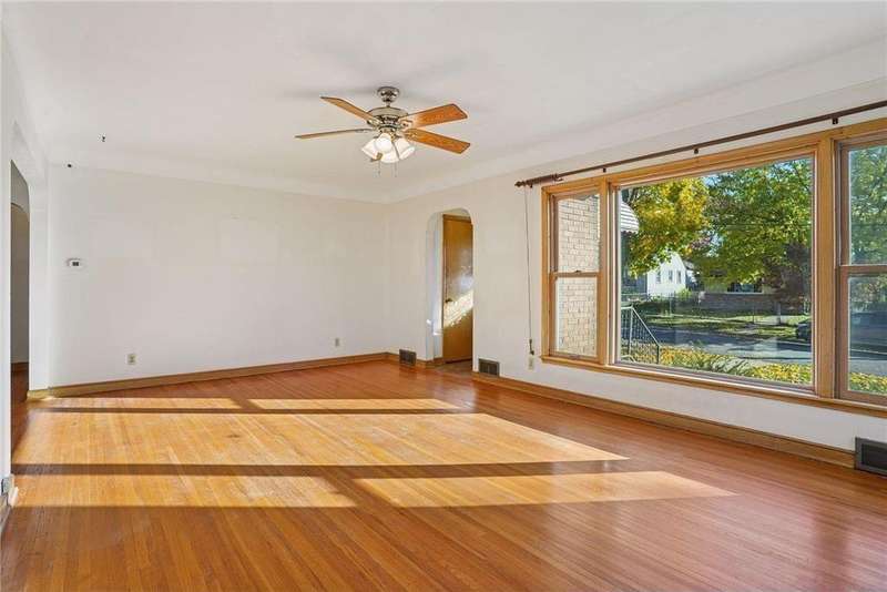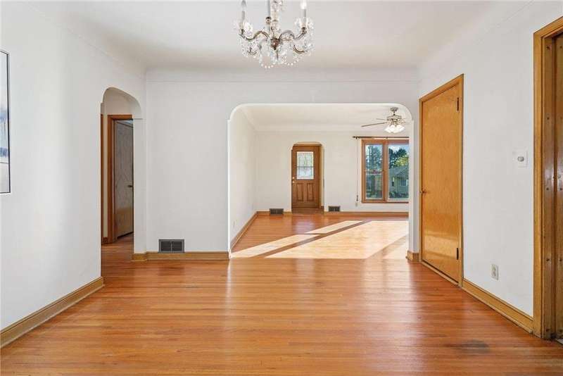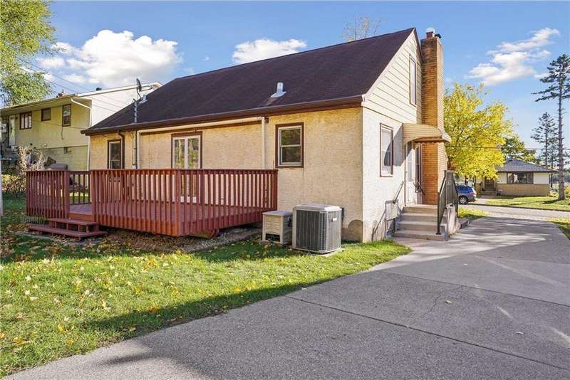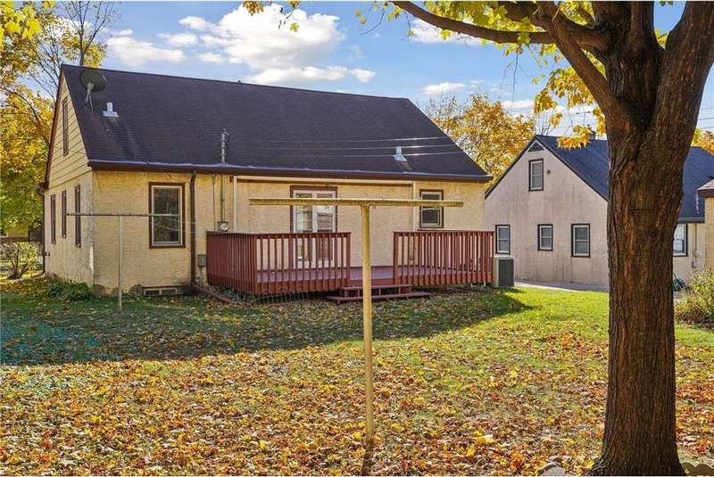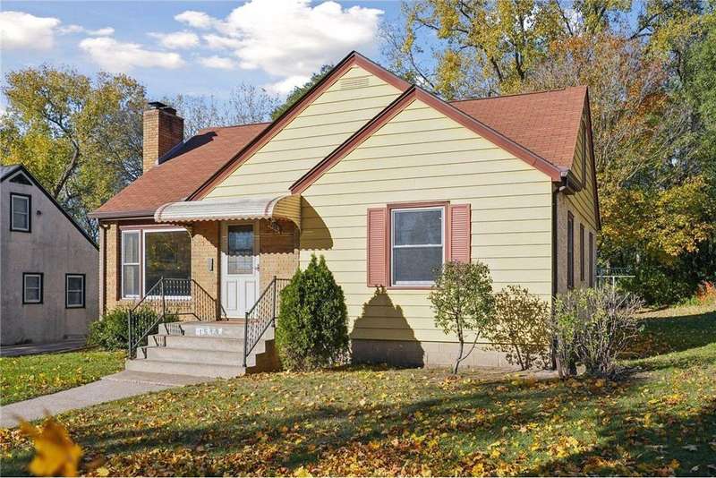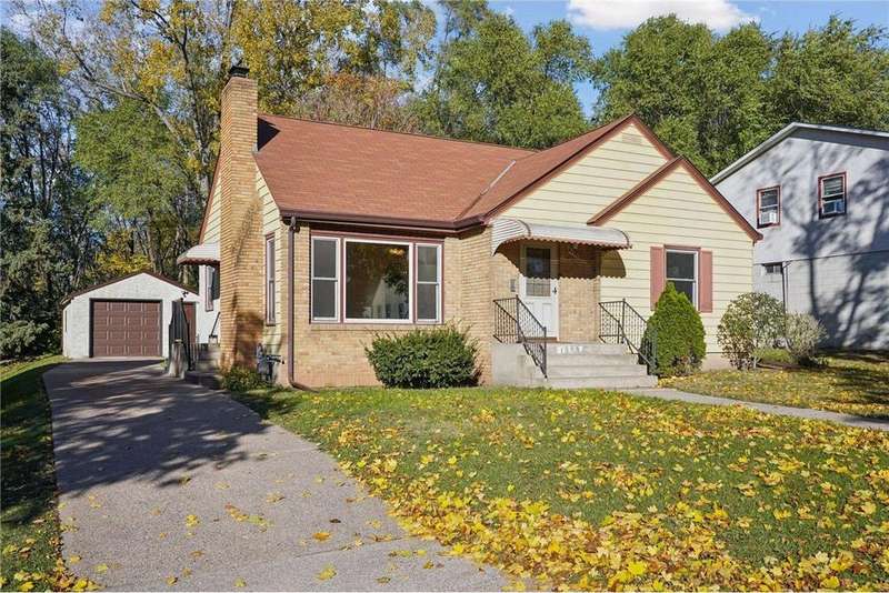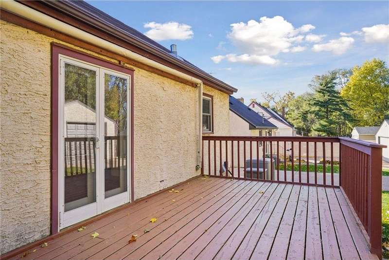 Fabulous brick-front 1 ½ story on a quiet, treelined block of homes! Enjoy generously sized rooms filled with charming original details including a sunny living room with hardwood floors, coved ceilings and a stone woodburning fireplace and an arched doorway to the dining room and adjacent kitchen. French doors in the dining room walk out to the deck and private yard with fantastic space for entertaining, pets and play. 3 nicely sized bedrooms and 2 bathrooms including 2 bedrooms on the main and an expansive bedroom up with lounge/office space. The lower level is a blank canvas with flexible space to fit your needs; family room, wet bar, media room, 4th bedroom, office and has a workshop and great storage, too! Anderson windows, maintenance free siding, solid bones. Oversized 1 car garage. Incredible opportunity to cosmetically refresh and gain instant equity! Vibrant neighborhood close to schools, parks, trails, shopping, restaurants and minutes to downtown Saint Paul. Welcome home!