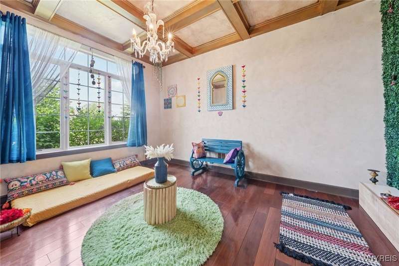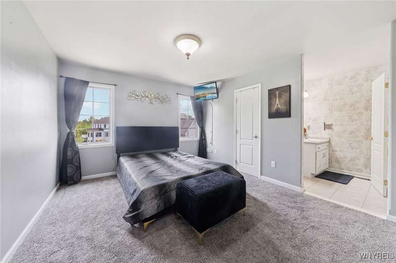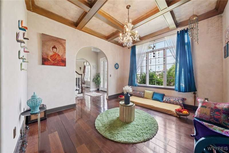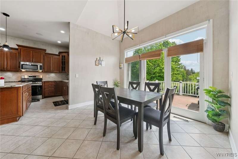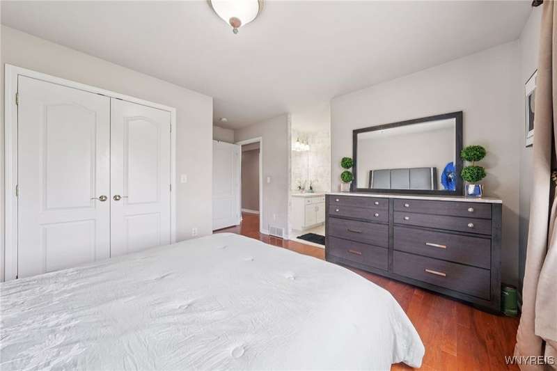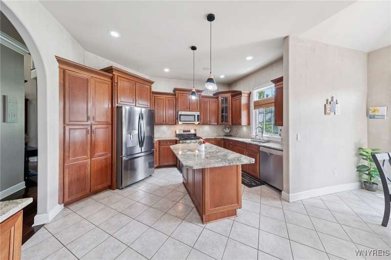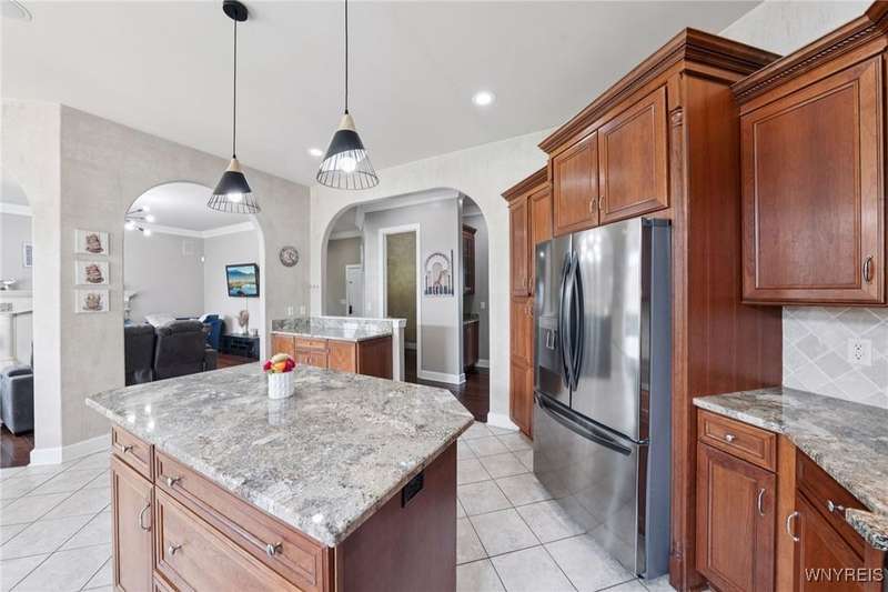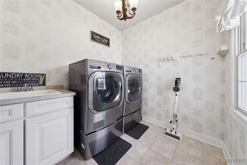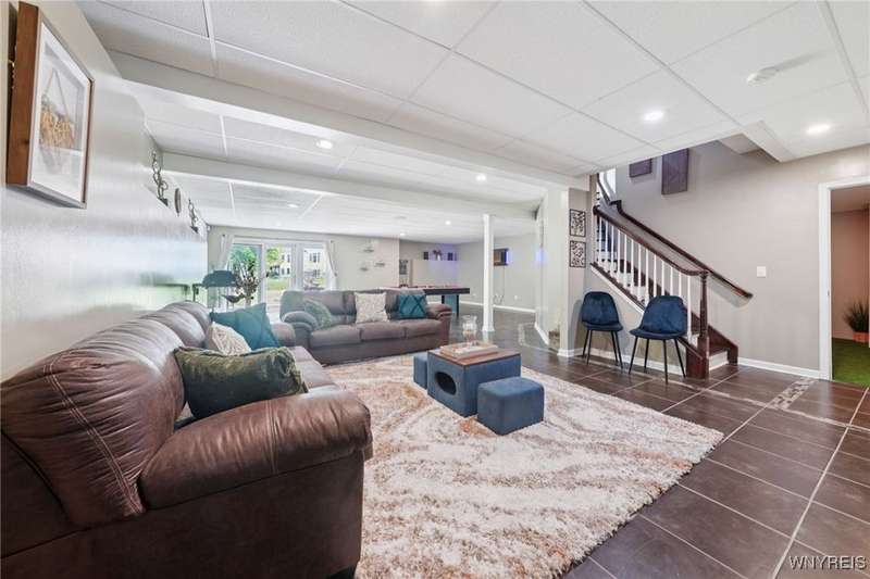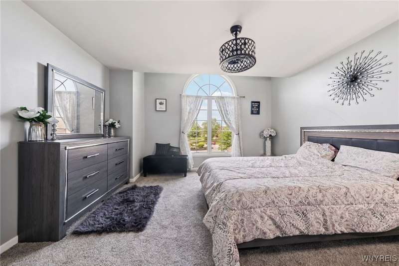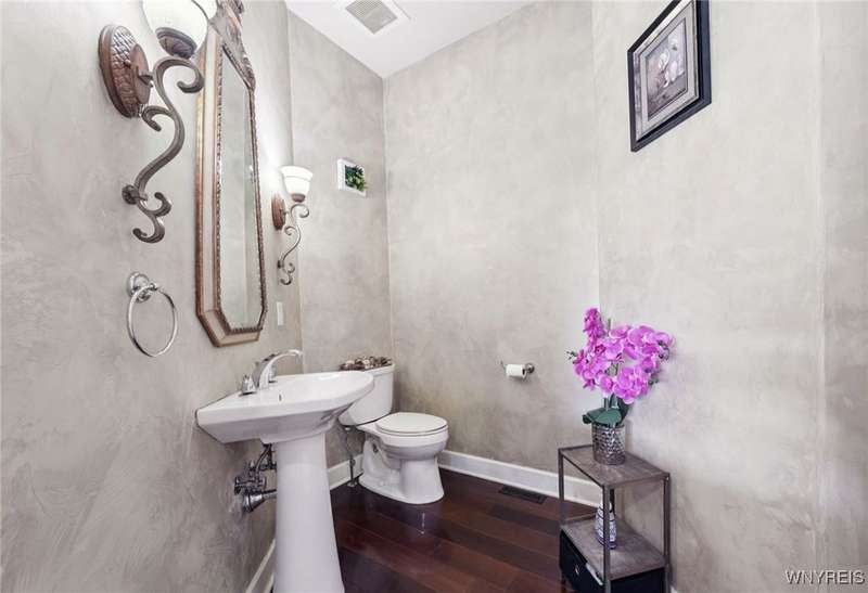 Welcome to 5703 Fairmeadow Court, a stunning 4-bedroom, 3.5-bathroom residence nestled on a Cul-de-sac in Clarence Center, NY. This meticulously designed home boasts over 4,100 square feet of luxurious living space, showcasing exquisite craftsmanship and attention to detail. The grand two-story entrance sets the tone for the home's elegance, featuring rich walnut hardwood floors and rounded archways throughout the first floor. The spacious living room is enhanced by a double-sided fireplace creating a warm and inviting atmosphere. The chef's kitchen is a culinary dream, equipped with stainless-steel appliances, granite countertops, a butler's pantry and a convenient first-floor laundry room. The den/study is adorned with 10-foot coffered ceilings. Upstairs, you will find 4 bedrooms and 3 full baths. The master suite offers a serene retreat with a glamour bath and separate shower. The second bedroom enjoys the privacy of its own en-suite bath. The third & fourth bedrooms share a Jack & Jill bathroom. The lower level offers a large finished great room perfect for entertaining or family gathering. Step out the French doors to your private oasis, complete with a custom saltwater pool, a fire pit area and ample green space. The lower level also includes a second private office, a bar room and plenty of storage space. Additional highlights include a three-car attached garage, Pella windows, Zoned heating and cooling with two heating and A/C units, all within the highly rated Clarence School System. This exceptional home offers a wonderful blend of luxury, comfort, and functionality, making it the perfect place to call home.