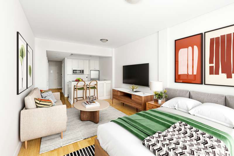 Welcome to Apartment #6F at 75 Clinton Street, an oversized studio apartment with in-unit washer/dryer in Brooklyn Heights