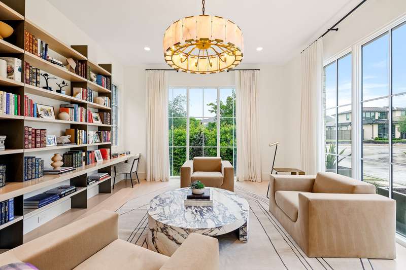 Welcome to an extraordinary opportunity in the prestigious, gated enclave of The Bluffs at Cochran Chapel an exclusive community of just 12 architecturally significant residences, each crafted for those who demand unparalleled quality, privacy, and sophistication.Custom-built by renowned luxury builder Mark Molthan in 2022, this modern masterpiece spans 5,306sqft of impeccably curated living space. The expansive primary suite located on the main level for ultimate convenience, while 2 add'l bedrooms upstairs offer comfort and privacy for family or guests. A dedicated office on the 1st floor provides a refined setting for work or study, and the oversized 3car garage ensures ample room for vehicles.The homes interiors are anchored by a stunning premium bar, setting the stage for effortless hospitality. The state-of-the-art outdoor kitchen and professionally turfed backyard create an inviting space, while a breathtaking sunroom with retractable glass walls seamlessly connects the indoors w the serene outdoor.Architectural artistry is showcased throughout, w a dramatic floating staircase as a signature centerpiece and soaring floor-to-ceiling windows that bathe the interiors in natural light. The chefs kitchen is a vision of modern luxury, highlighted by a sculptural marble waterfall island, sleek custom cabinetry, and premium appliances a space where design and functionality meet in perfect harmony. Open-concept living areas flow elegantly from one to another, blending clean lines, warm textures, and impeccable craftsmanship to create a home that feels both expansive and intimately inviting.Additional highlights include four beautifully appointed full bathrooms and a powder room featuring spa-quality finishes, integrated smart home technology, high-performance energy efficiency, and meticulously curated landscaping designed to enhance privacy and natural beauty at every turn. Every element has been thoughtfully considered and executed to the highest standard.