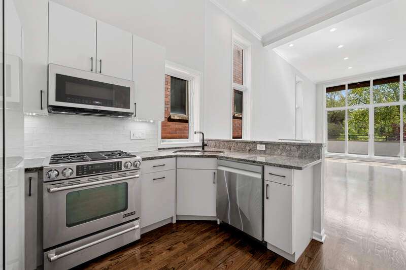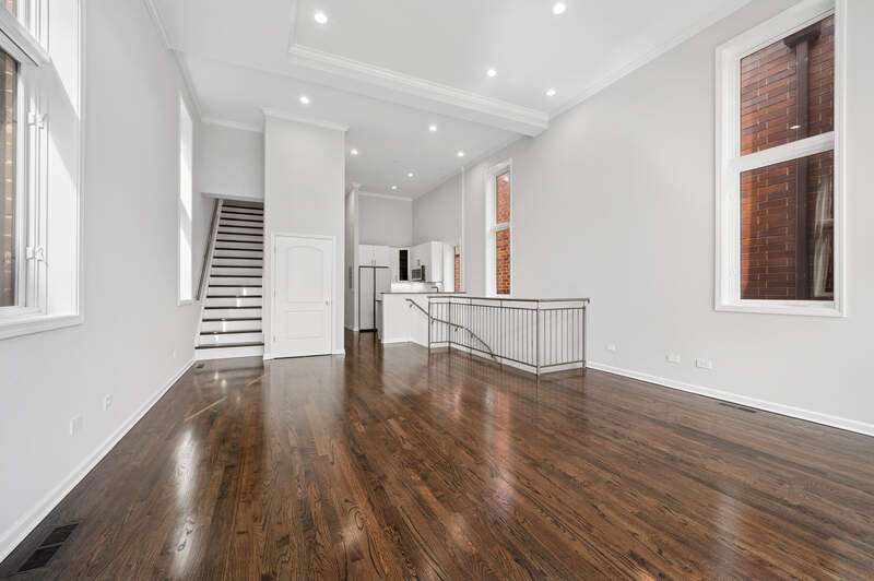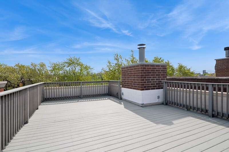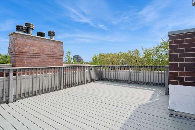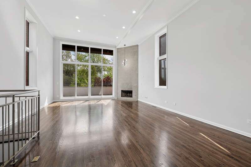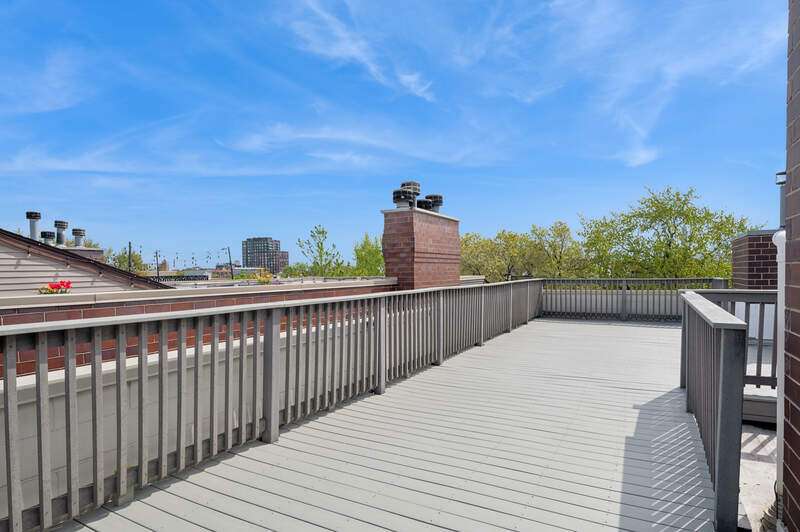 The wait is over, updated Wicker Park 3BR/2.1BA Penthouse with massive private rooftop deck! Experience the best of city living in this beautifully updated, spacious tri-level penthouse located in an all-brick building in the heart of Wicker Park. With three private outdoor spaces-including an expansive rooftop deck with Trex decking and breathtaking skyline views-this home offers the ultimate in indoor-outdoor living. Inside, you'll find freshly refinished hardwood floors and brand-new paint throughout. The main level boasts soaring 14-foot ceilings, oversized windows, sliding glass doors that lead to an 18x8 private terrace and wood burning fireplace with gas starter, perfect for entertaining or unwinding. The open-concept kitchen features granite countertops, 42" cabinets, and newer stainless steel appliances, including a refrigerator, microwave, and dishwasher. Thoughtfully designed for comfort and privacy, the split-level layout places the primary suite on its own upper level. Enjoy a private balcony, plus a spa-inspired en-suite bathroom with a double vanity, deep soaking tub, and steam shower. Downstairs from the main level are two bedrooms and a full bathroom-ideal for guests, family, or a home office. All of this is located just steps from the best of Wicker Park: Division Street nightlife, the Blue Line, Chicago Avenue dining, Target, Wicker Park Athletic Club, and local coffee shops-all within a five-minute walk. Garage parking included.