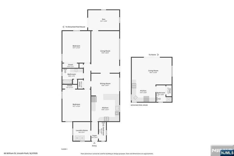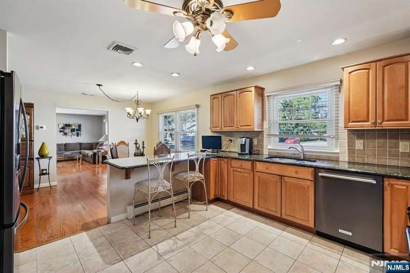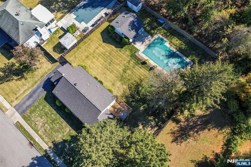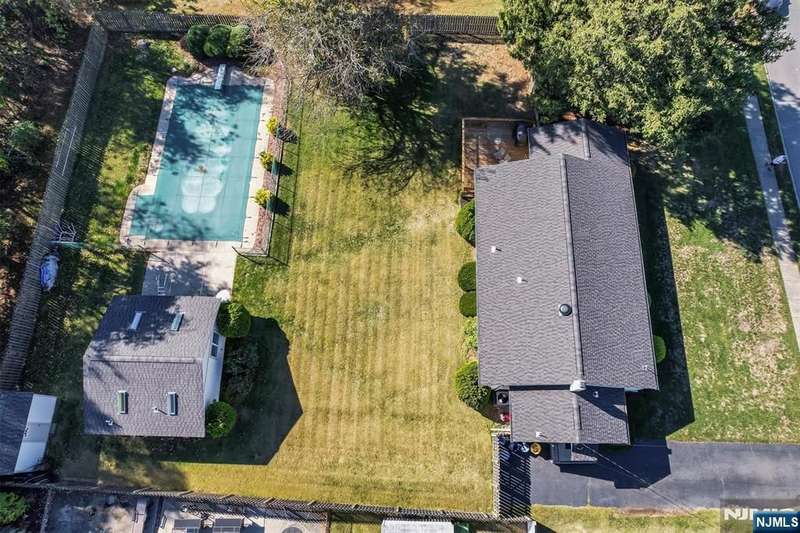 Welcome home to this beautifully maintained 2-bedroom, 1.5-bath Ranch nestled on a fully fenced, level lot in the heart of Lincoln Park. Step into the welcoming living room filled with natural light, offering a comfortable atmosphere that invites relaxation and connection. A large cased opening leads into the beautifully appointed dining room, an ideal setting for intimate meals or hosting gatherings. The dining room flows seamlessly into the eat-in kitchen, a home chef's dream featuring custom cabinetry, granite countertops, black stainless steel appliances, and bar seating. Just off the main living area the primary bedroom offers a large closet and is your personal retreat at the end of the day. The second bedroom also includes a generous closet. The den provides a versatile space perfect for a third bedroom or home office. A laundry room, full bathroom, and convenient powder room complete this thoughtfully designed single-level home. Sliding glass doors from the den lead to the spacious rear deck, ideal for outdoor grilling and al fresco dining, and overlooking a generous backyard with plenty of space for recreation and relaxation. Enjoy summer days by the in-ground pool, complete with a pool house retreat offering vaulted ceilings, skylights, a full kitchen, living room, and full bath, perfect for guests or bonus living space. Ample driveway parking and a prime location near NYC transportation, shopping, and dining make this home the total package.