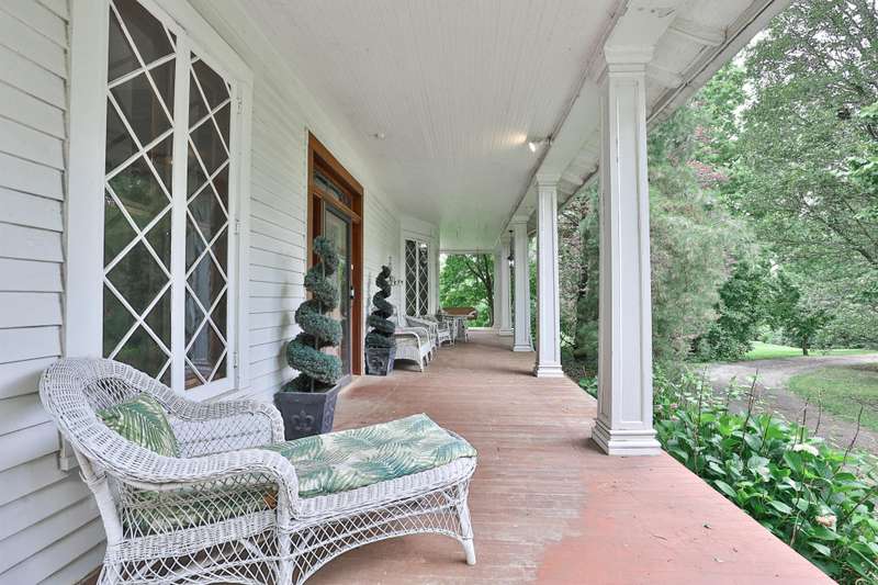 Shown by appointment only. Please do not pull into the driveway without a confirmed appointment. One of a kind Historic home. Was a summer home to an industrialist. Full covered front porch 31 x 9 screened side porch beautiful glass in front door transom and side lights. Huge Living Room with wood floor wainscoting crown molding and chandelier. Eat in Kitchen with ceramic floors beautiful wood cabinets unique decorative ceiling finish plus 2 chandeliers. Butlers pantry with sink granite counter tops in kitchen and butlers pantry. Family room with beamed ceilings pellet stove and built in shelves. Rear Foyer with ceramic floors half bath. Atrium bonus room and laundry all on 1st floor. Generous closets. Stairway up to unfinished attic. 3 car garage. Tennis courts, green house and Gunite pool (last used 2023). 2 parcels approx. 2.7 acres and more! To be Sold As-Is condition.