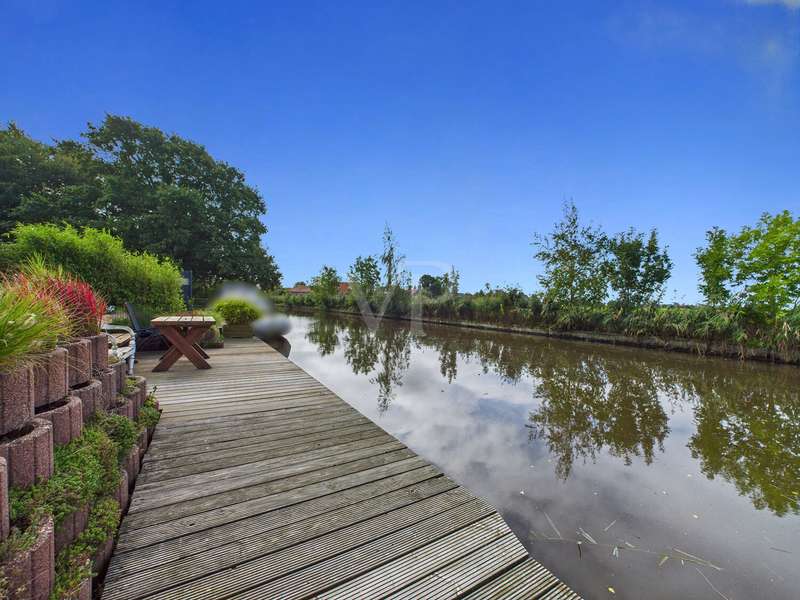 This charming semi-detached house from 1928 offers an idyllic home in a quiet location with approx. 85 m² of living space on a generous plot of 485 m² - directly on the canal with its own jetty. The house has been continuously modernized and maintained, so that today it can become your own little oasis in combination with the quiet location, the unobstructed views and the lovingly landscaped garden. On the first floor, you are greeted by a hallway with access to a practical storage room. This was previously used as a guest WC and can be converted back into one with little effort. The kitchen, which was renovated in 2023, has space for a cozy seating area and offers direct access to the living room. Here, a wood-burning stove from 2014 provides cozy warmth in the colder seasons. Adjacent is the dining room with a view of the well-tended garden. There is a spacious bedroom and a shower room on the top floor. The house has a full basement and therefore offers plenty of storage space - ideal for garden tools, hobbies or as a storage cellar. The garden is a real highlight: fenced in and lovingly landscaped, it houses a fire pit, a garden pond, a gazebo and a log cabin built in 2022 with a covered veranda, electricity and TV connection. The roof of the log cabin was renewed in 2023. The jetty on the canal allows boats with a draught of up to 80 cm to be moored - perfect for anyone who appreciates being close to the water and wants to explore the local canals. Numerous modernizations have been carried out in recent years, including the renewal of the electrics and the meter box (2010), the replacement of the windows and the front door (2022), a joint renovation (2022) and the construction of a new canopy (2022). External blinds and a fiber optic connection provide additional comfort. This house is ideal for anyone looking for a quiet home close to nature without having to compromise on modern standards.
